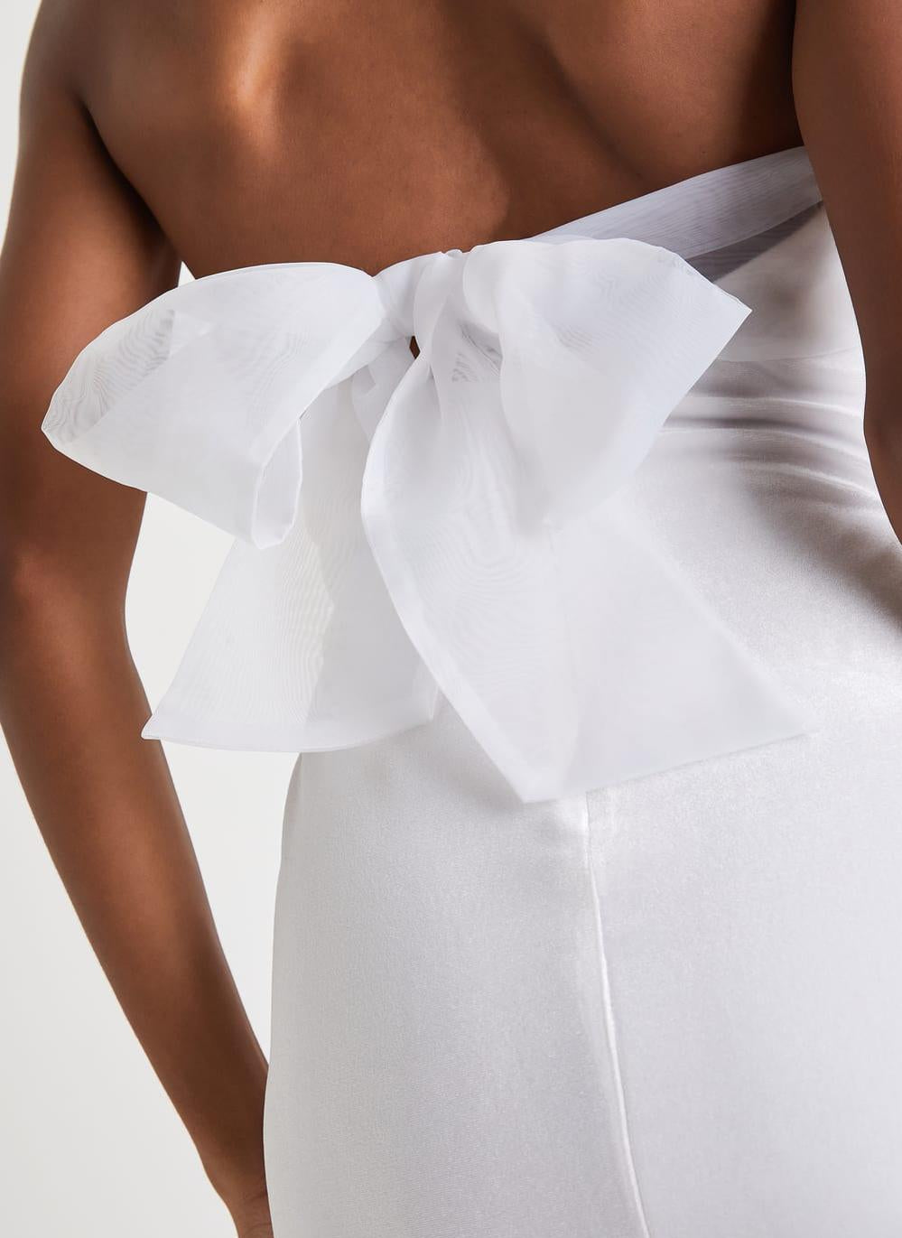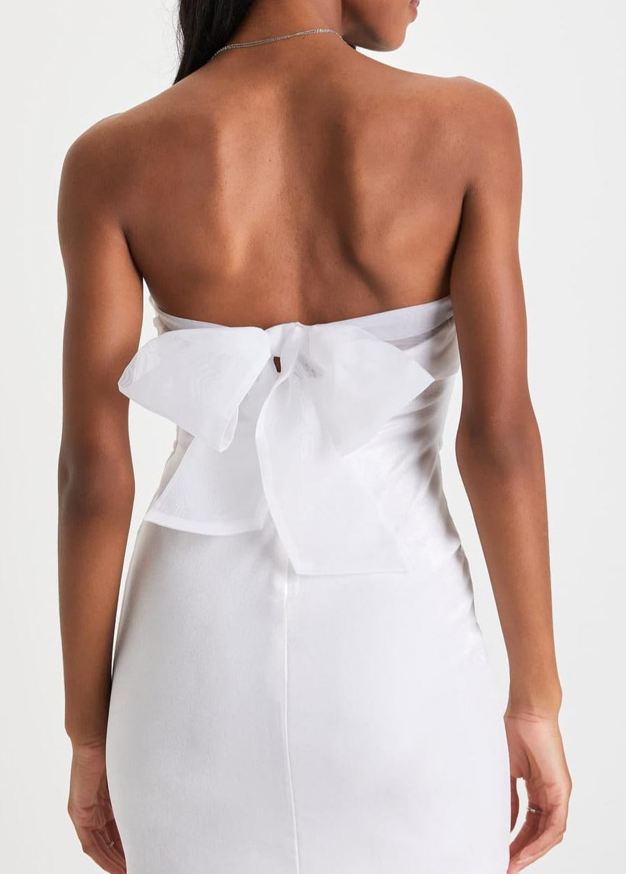 Stunning Situation White Velvet Strapless Organza Bow Mini Dress