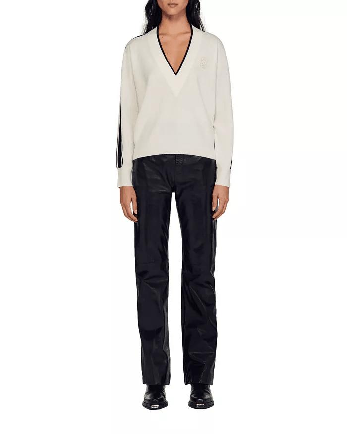 • Deep V-neck, contrast trim