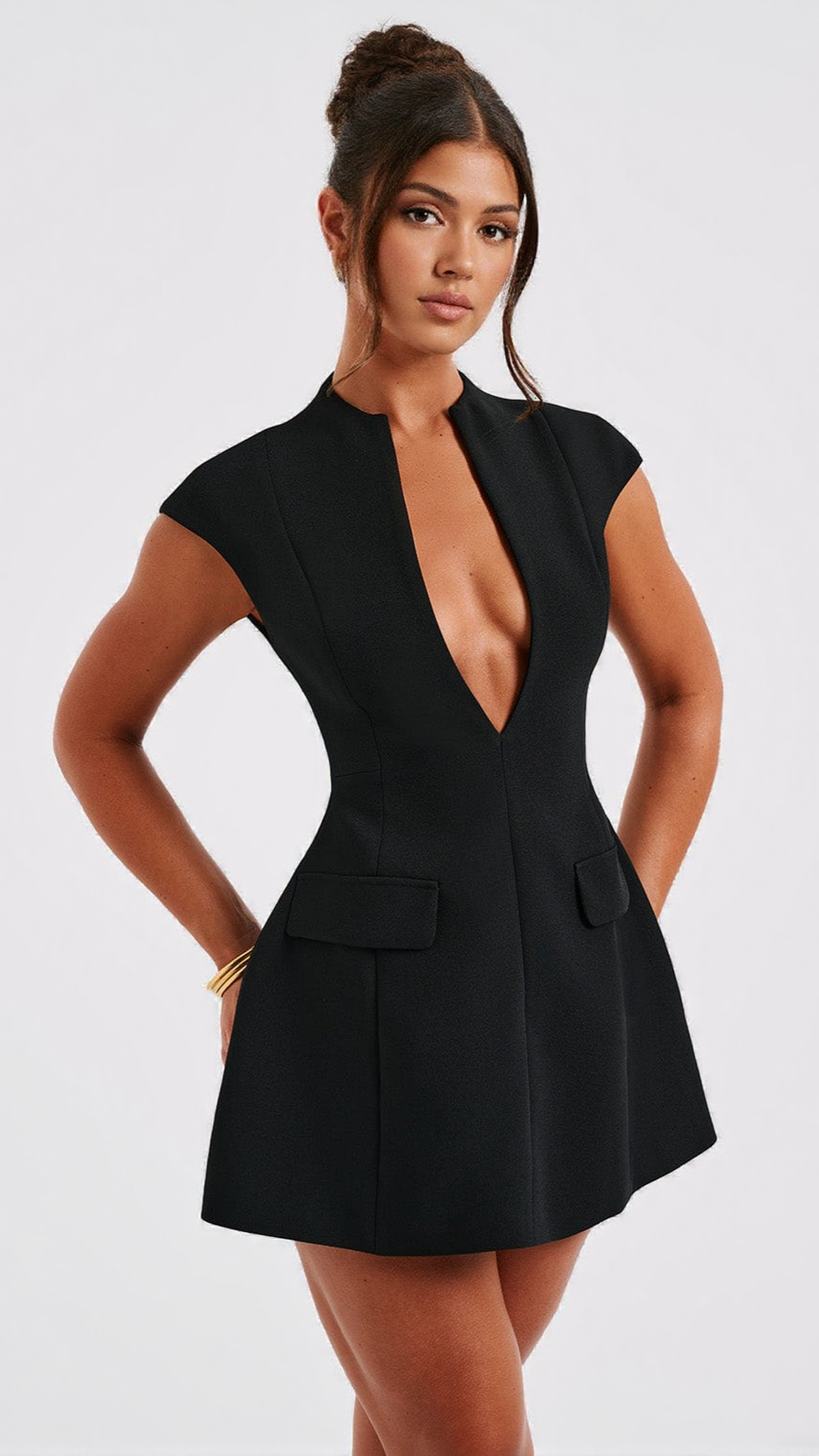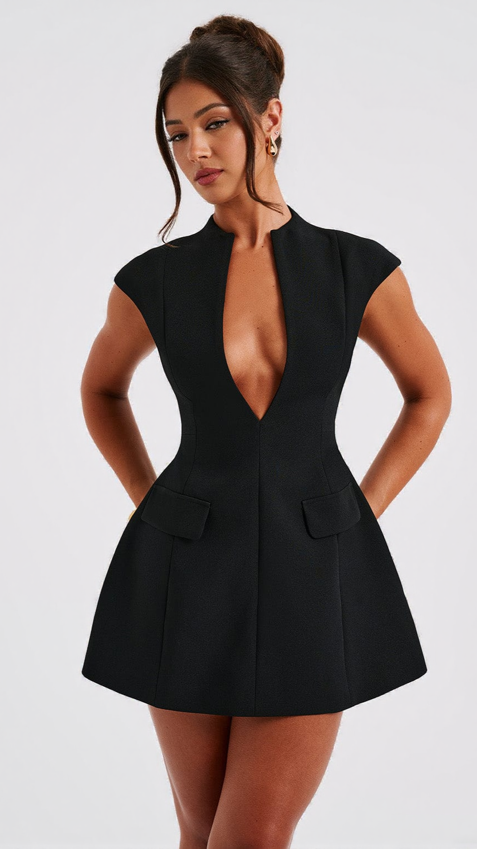 Simple and seriously chic, the Suri mini is this season's obsession. Perfect to wear for date nights, late nights and beyond, this cap sleeve design is finished with a deep plunge neckline, seam detail on bodice, bubble skirt and pockets to the front.