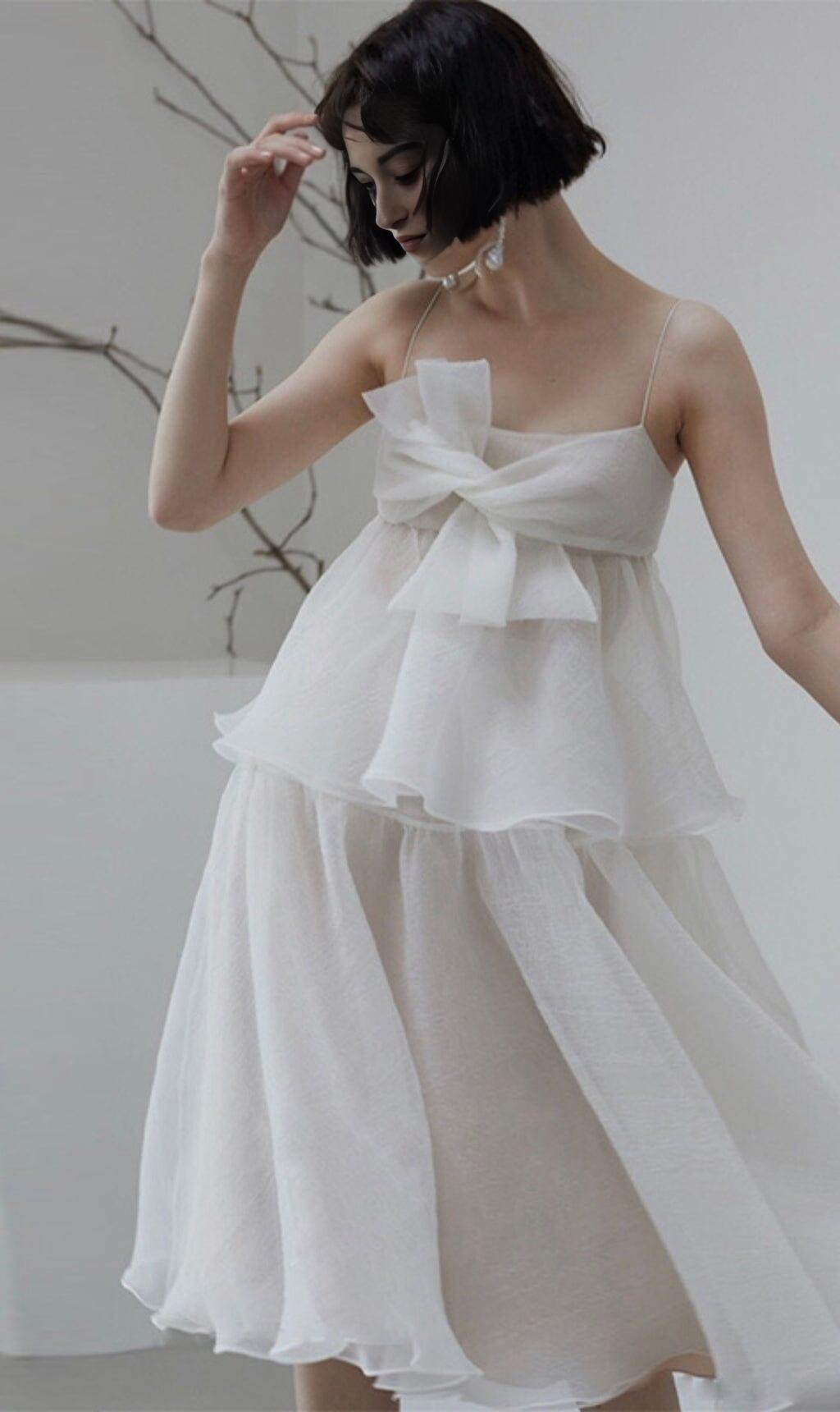 • Fluffy, soft white gauze material that makes you look light and bright
