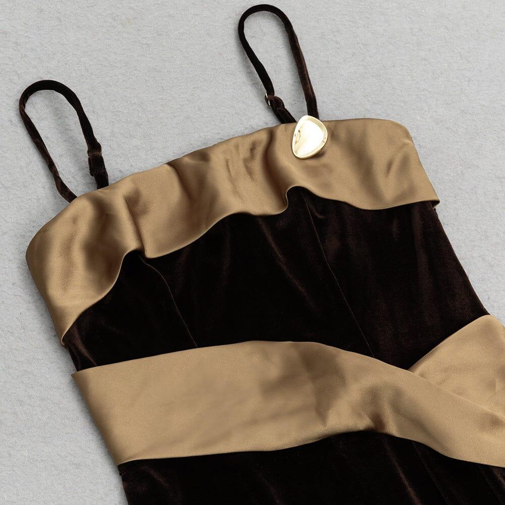 SUSPENDERS THIN STRAPS SLIMMING VELVET MAXI DRESS