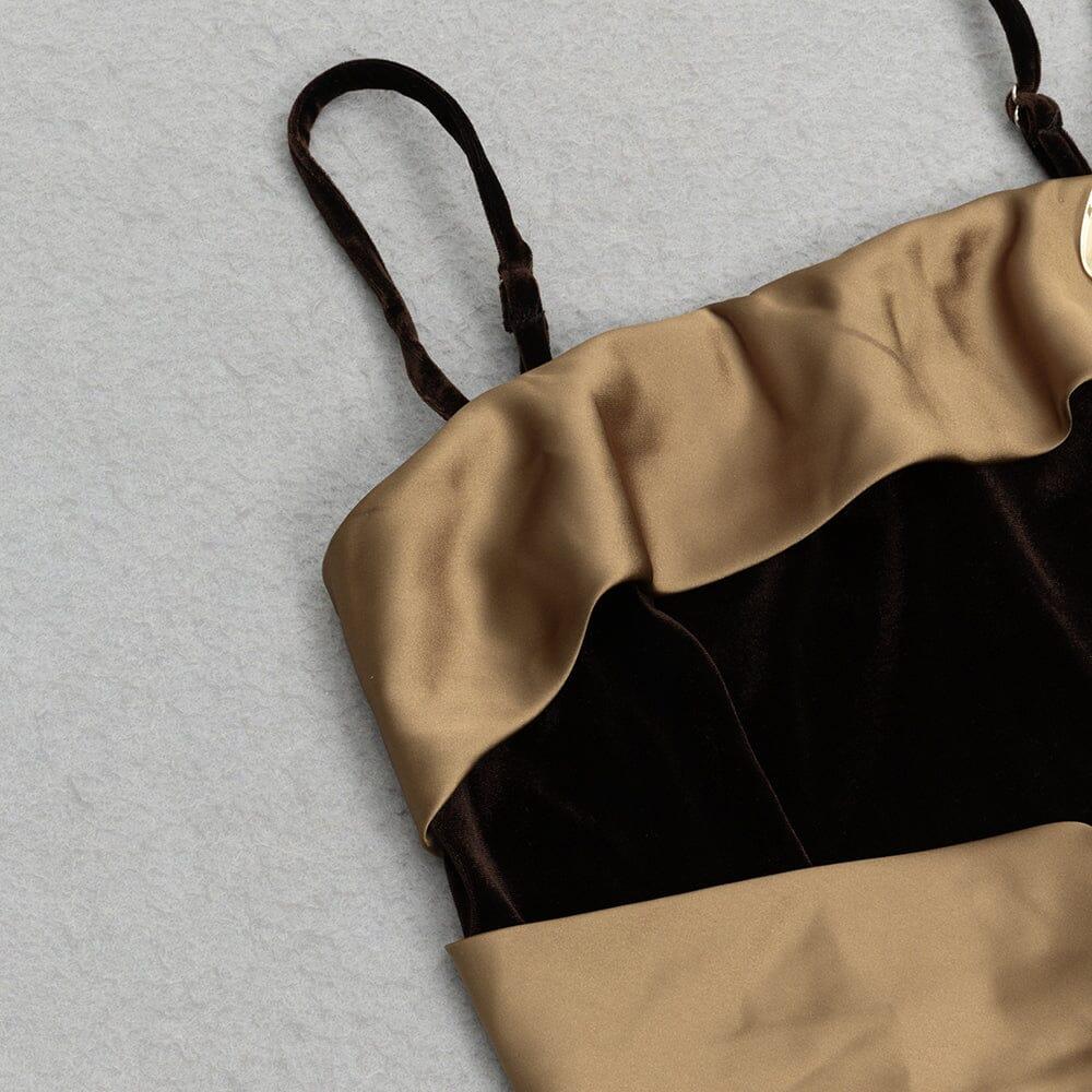 Turn heads in this sultry dress ! The slimming velvet fabric and thin straps will hug your curves in all the right places while the suspenders complete this avant-garde look. Redefine fashion and be bold!