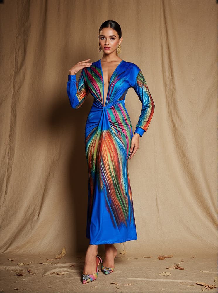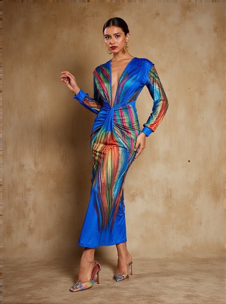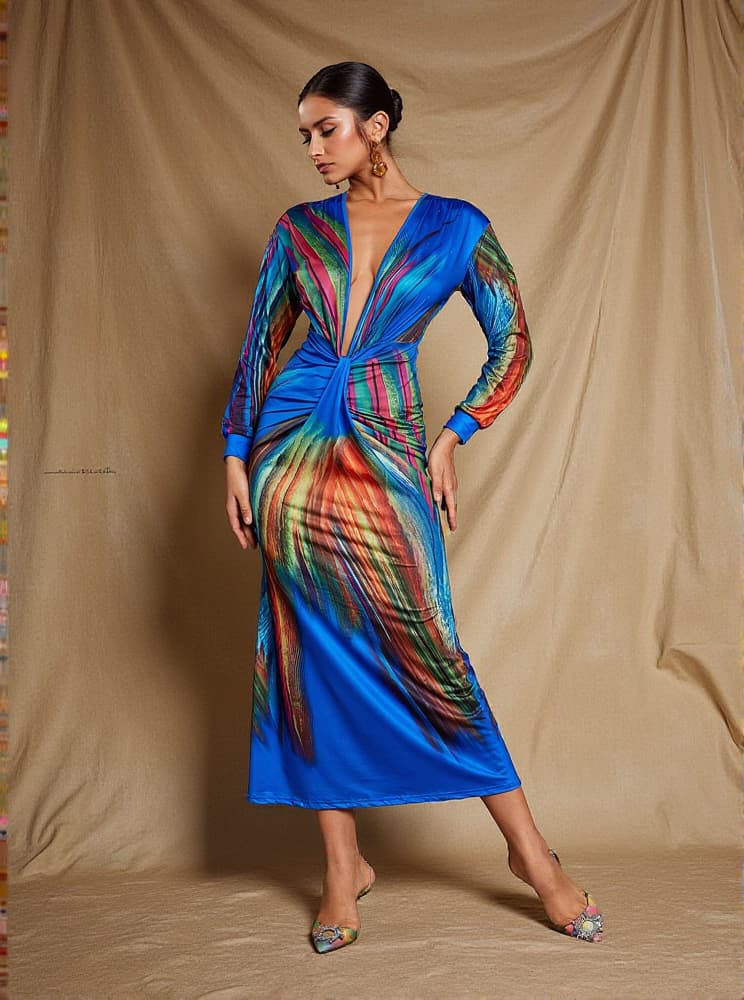 Indulge in luxury with the Suzanne V Neck Printed Satin Midi Dress. The beautiful v-neckline and elegant satin fabric create a flattering silhouette, perfect for any occasion. You'll feel confident and stylish in this dress, making it a must-have addition to your wardrobe.