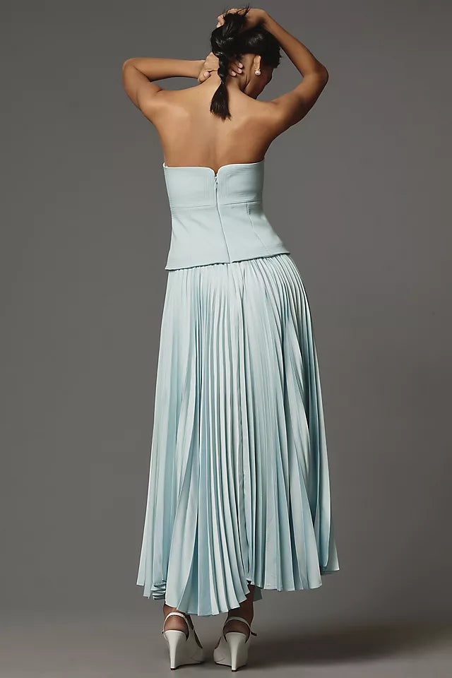 Sweetheart Neck Off-Shoulder Pleated Midi Dress