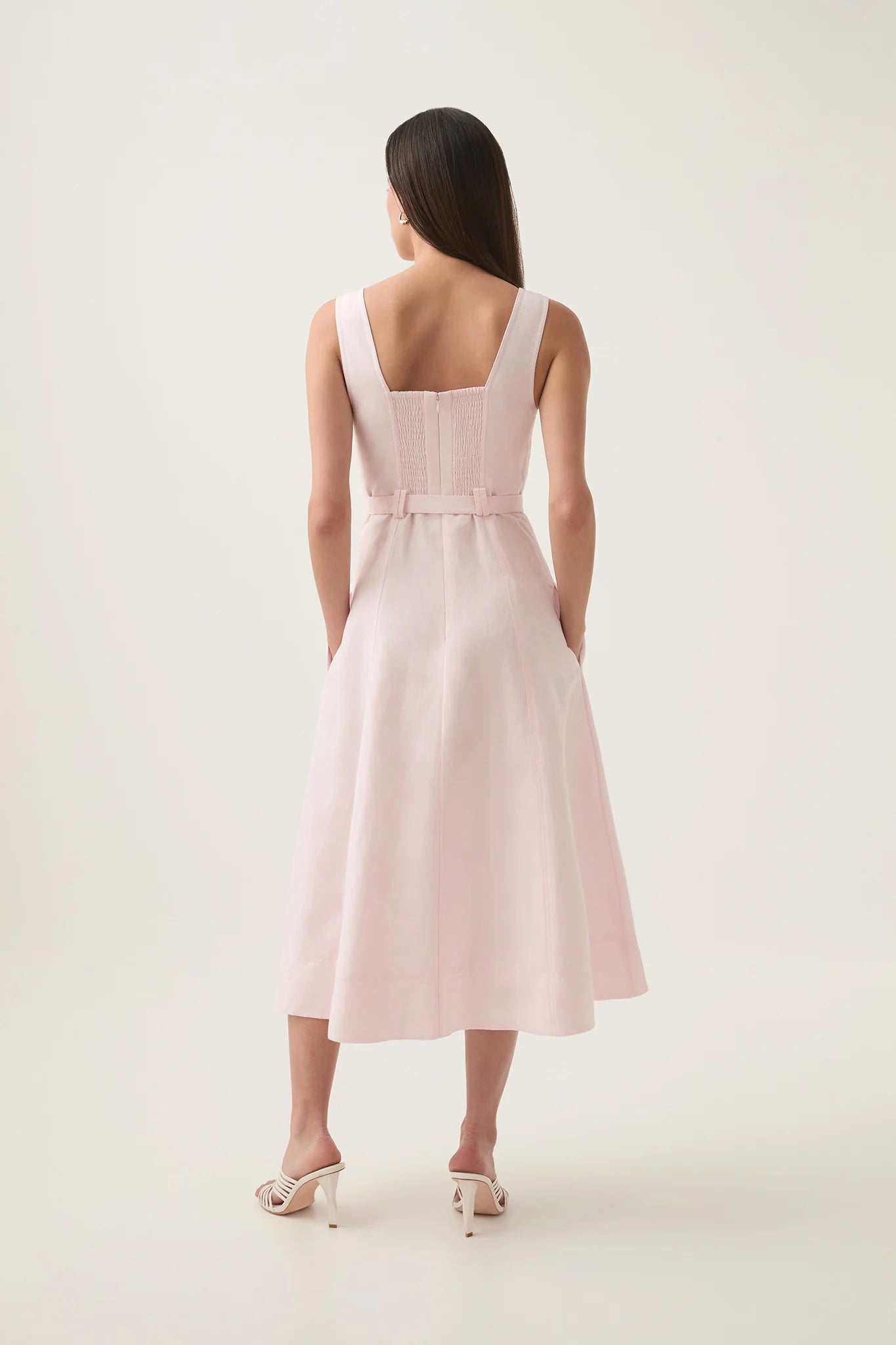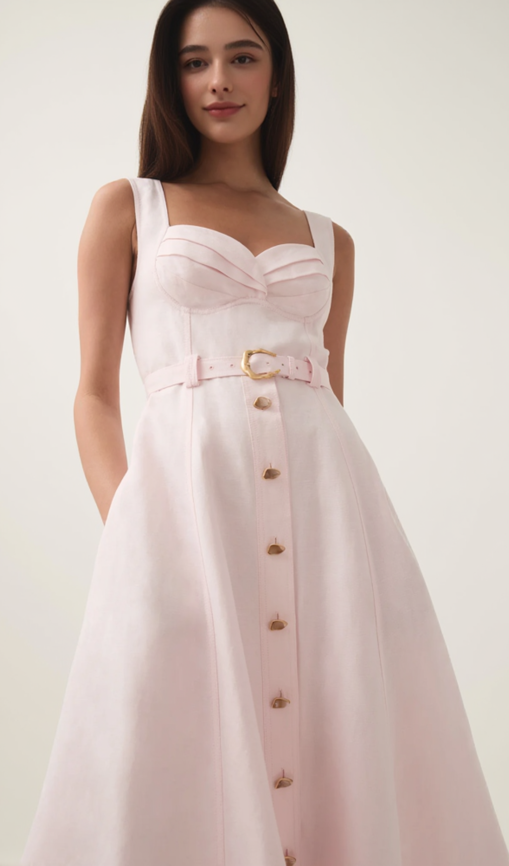 This ivory sweetheart neckline dress features a flattering belted waist and comfortable midi length, creating a sophisticated and elegant look. Perfect for any special occasion, this dress will make you feel confident and stylish. Enjoy the timeless beauty and versatility of this must-have piece.