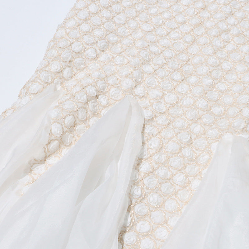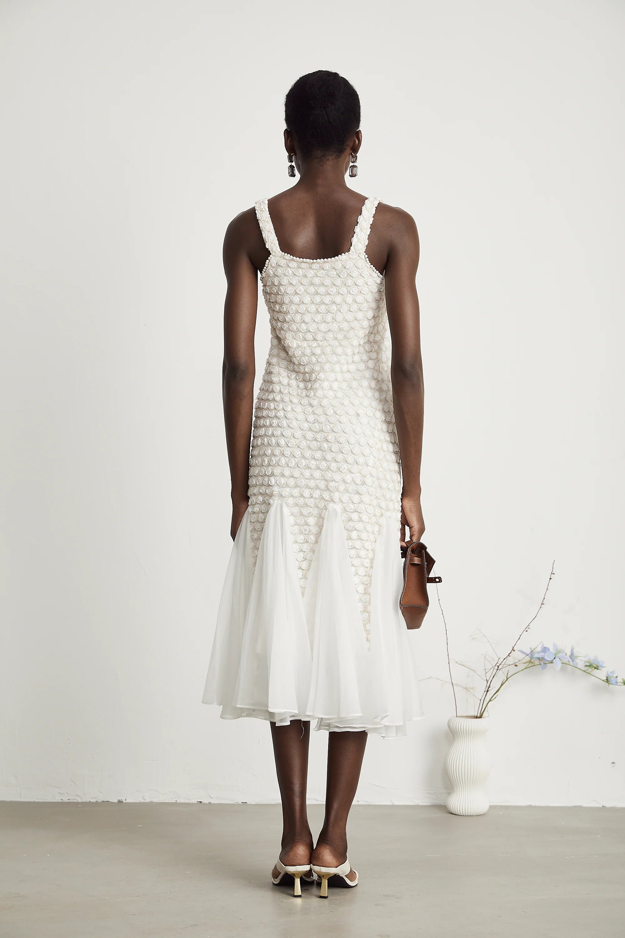 SYLVIA BEIGE EMBROIDERED SPLICING SLEEVELESS MIDI DRESS