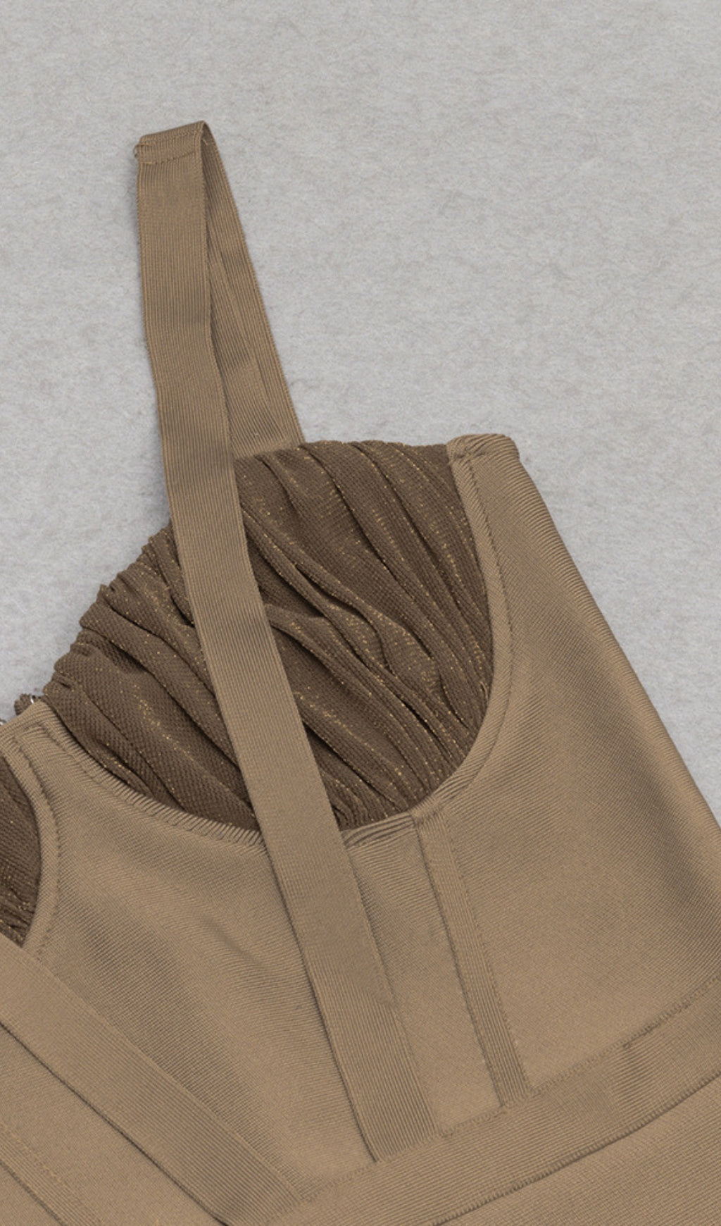 Tan Bandage Dress with Sheer Bustier and Side Slit