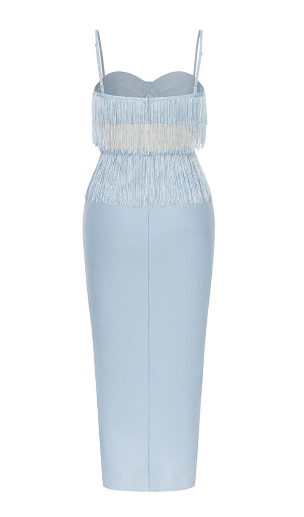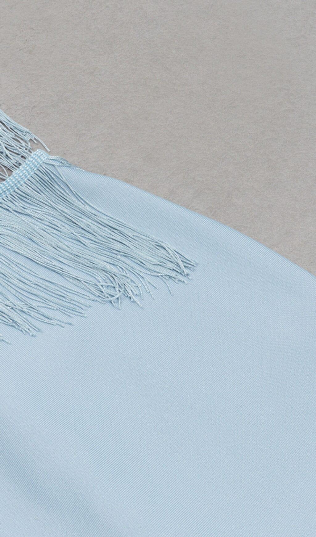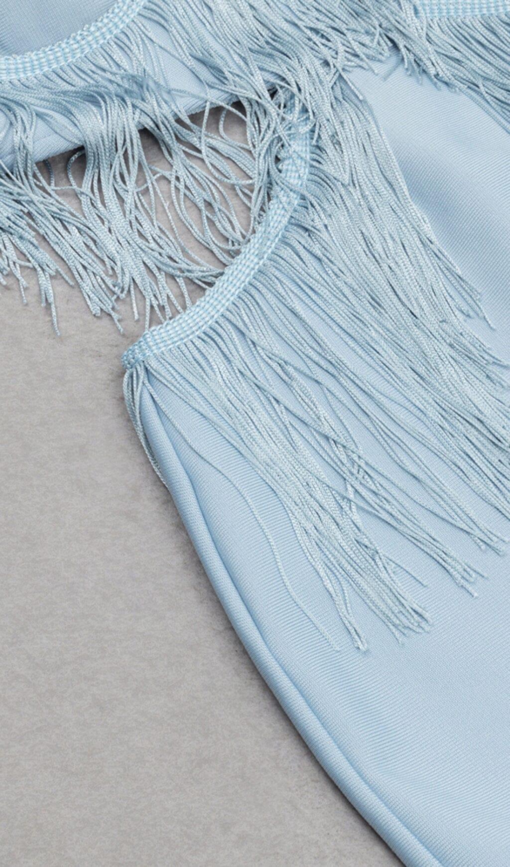 TASSEL BANDAGE MIDI DRESS IN LIGHT BLUE