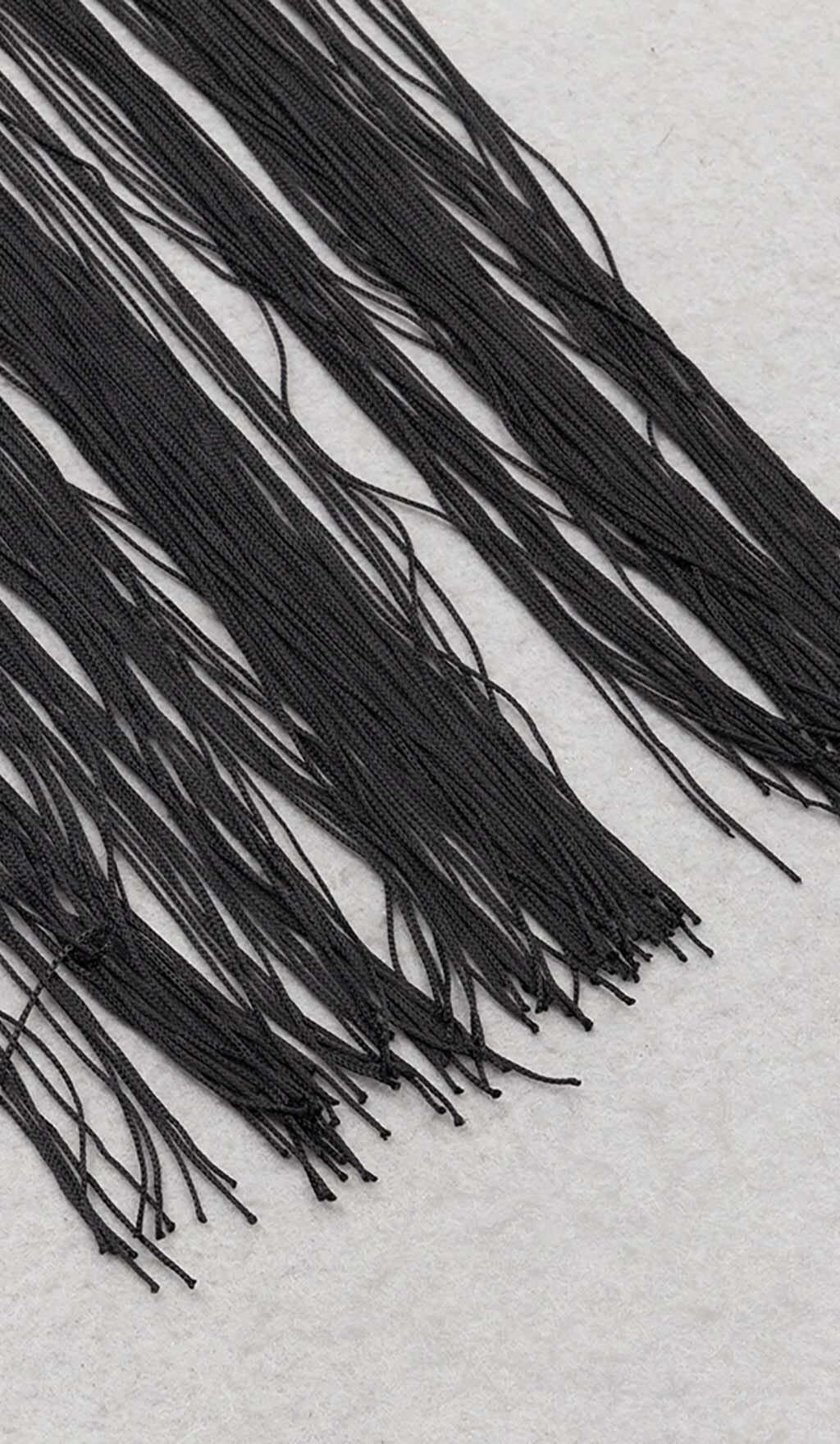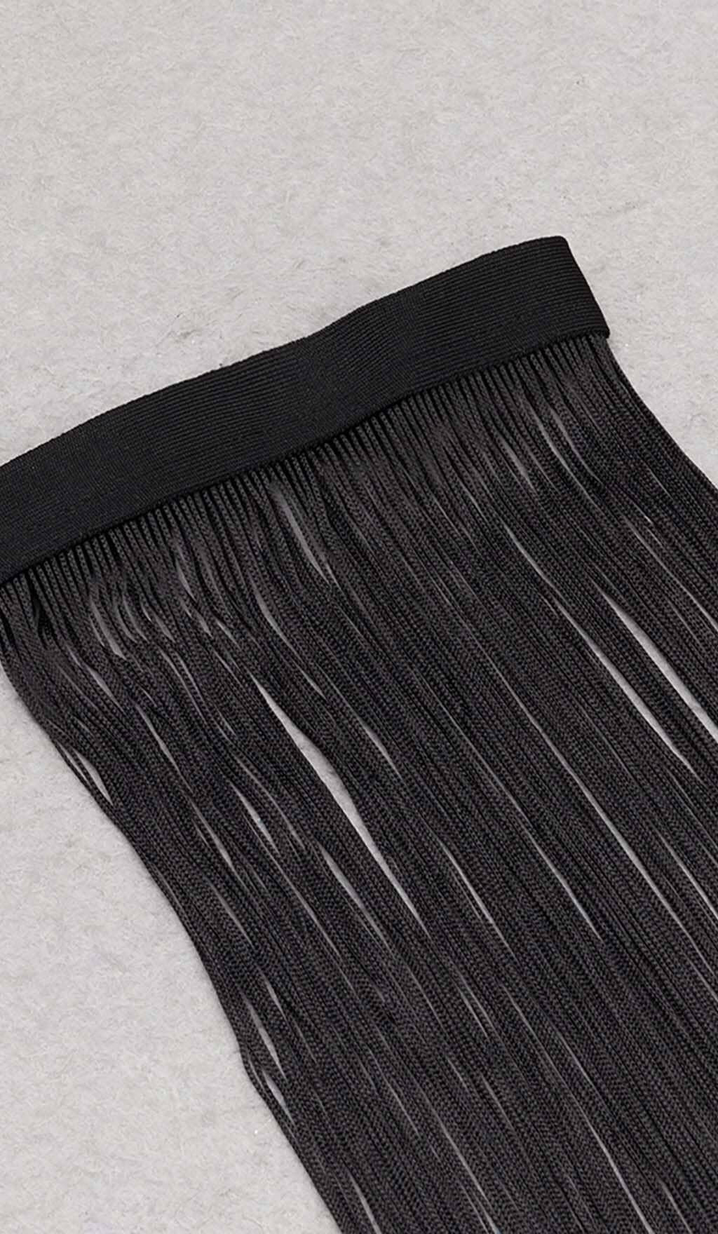 TASSEL HALTER BANDAGE MIDI DRESS IN BALCK