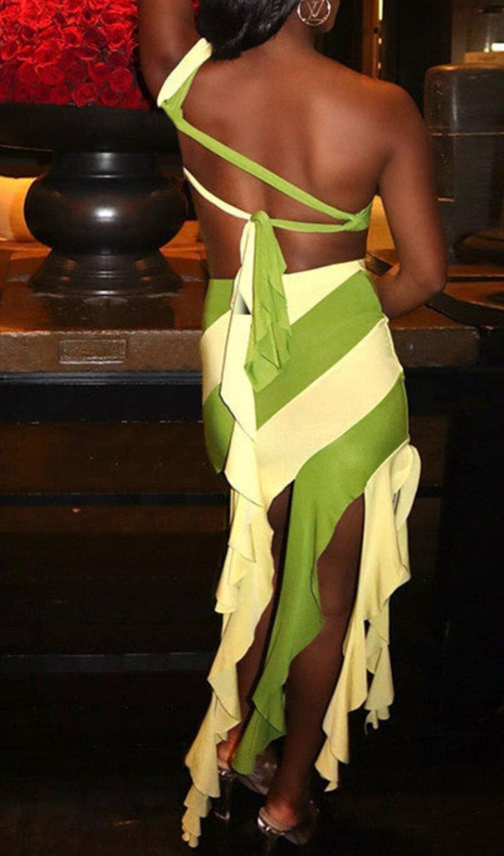 TASSEL IRREGULAR TWO-PIECE DRESS IN MOSS GREEN