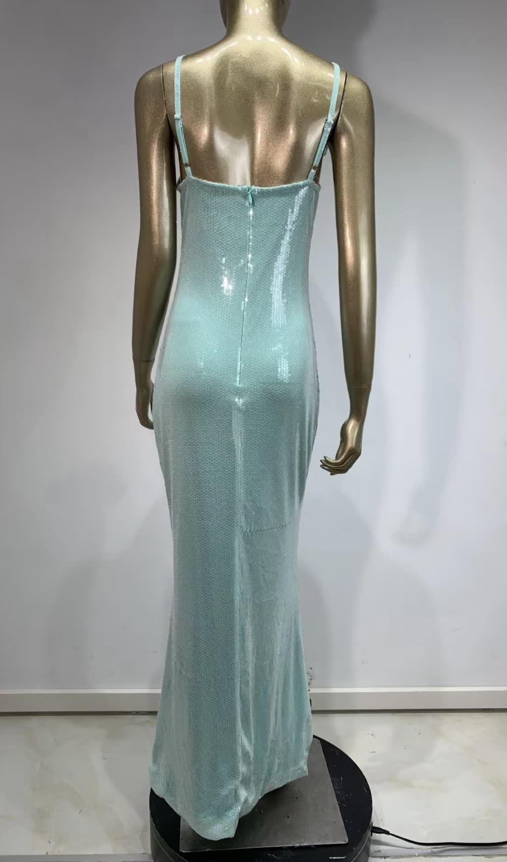 TEAL FLORAL EMBELLISHED BODYCON SEQUIN MAXI DRESS