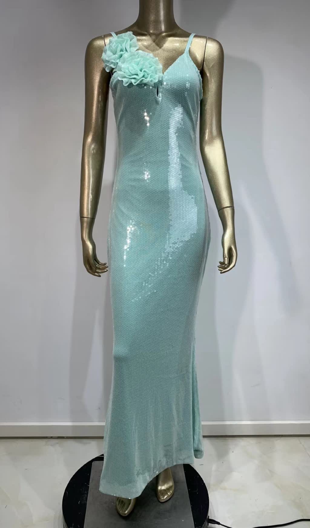 With its intricate floral embellishments, this maxi dress will definitely turn heads. The bodycon fit and sequin detailing add a touch of glamour, making you feel confident and ready to shine.