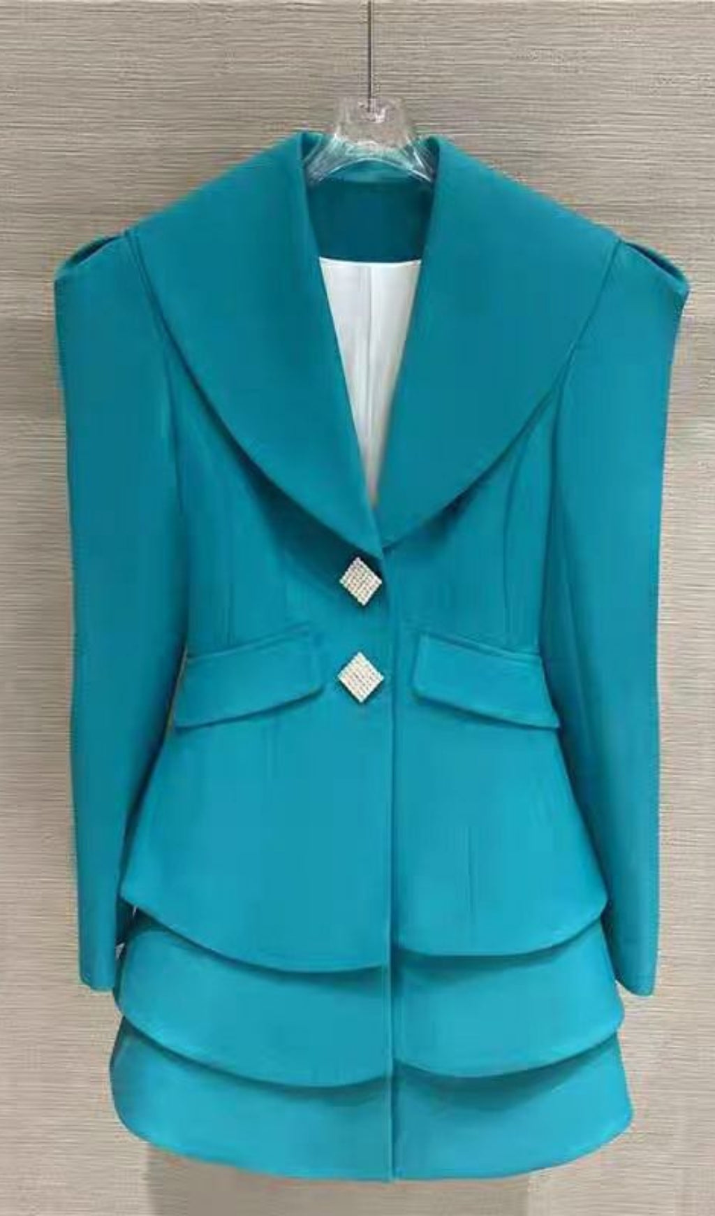 This Teal Layered Hem Suit Dress is the perfect choice for those days when you need to add a fun, fashionable flair to your wardrobe! This stylish dress will turn heads with its eye-catching teal color, layered hem and classic suit styling. Show off your style and stay comfortable in this remarkably chic dress!