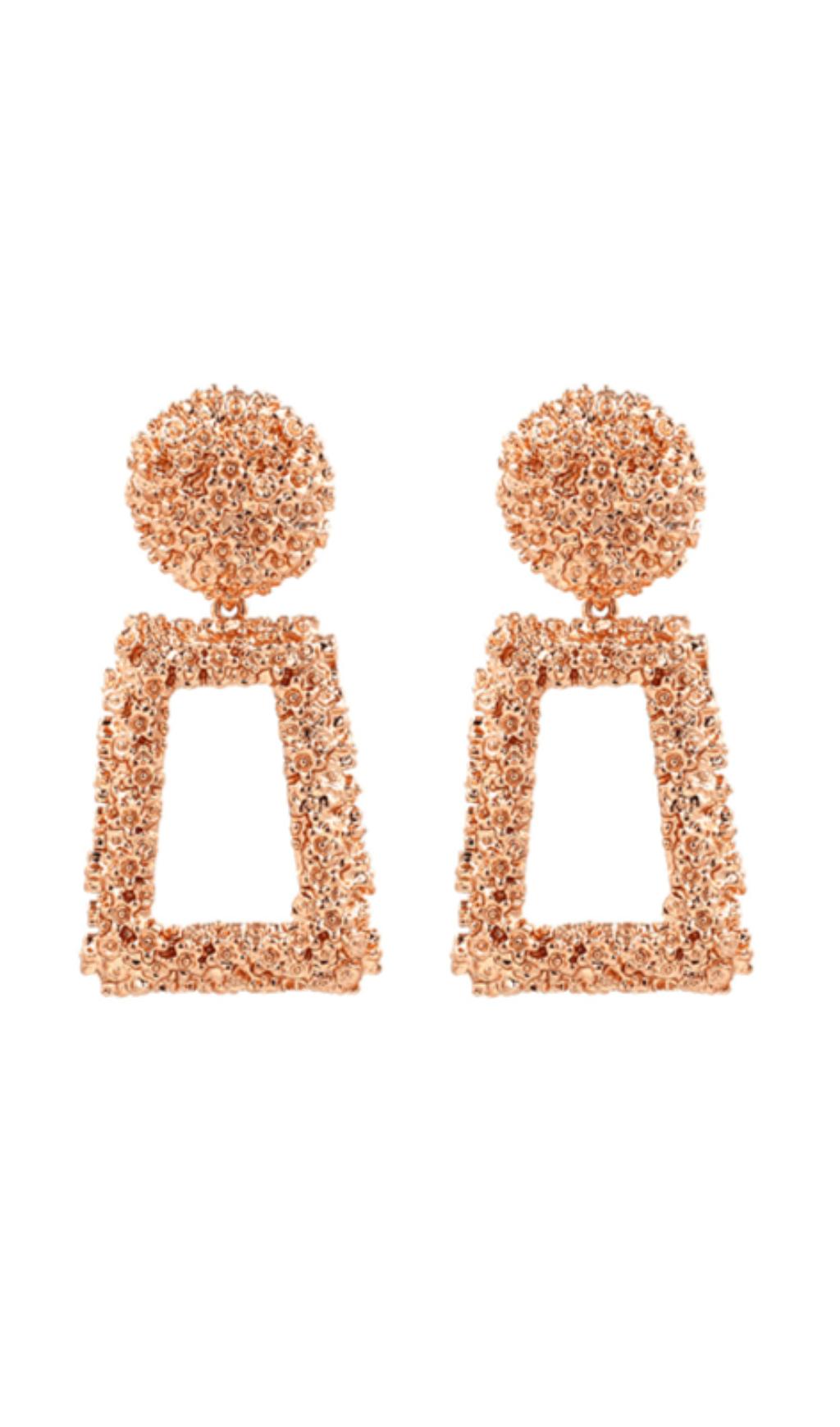 What makes our earrings truly special is their textured door knocker design. The intricate pattern adds a touch of sophistication and uniqueness to any outfit. Whether you're dressing up for a special occasion or adding a touch of glam to your everyday look, these earrings will effortlessly elevate your style.