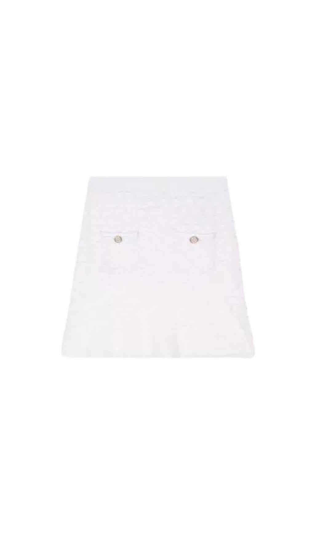 Featuring a unique textured knit design, this mini skirt adds a touch of sophistication to any outfit. Perfect for a day at the office or a night out, this versatile skirt offers comfort and style in one.