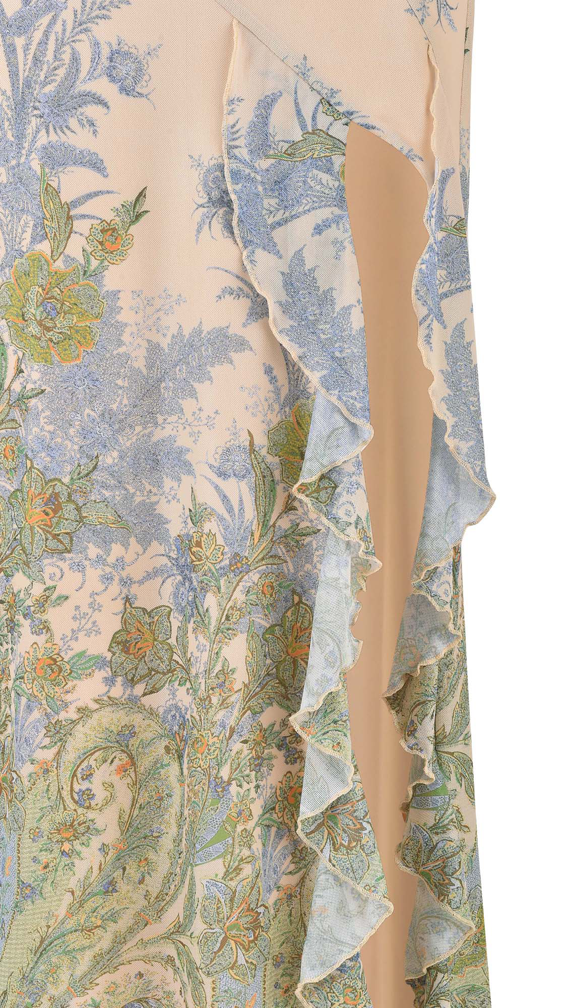 • Asymmetric hem details with frill