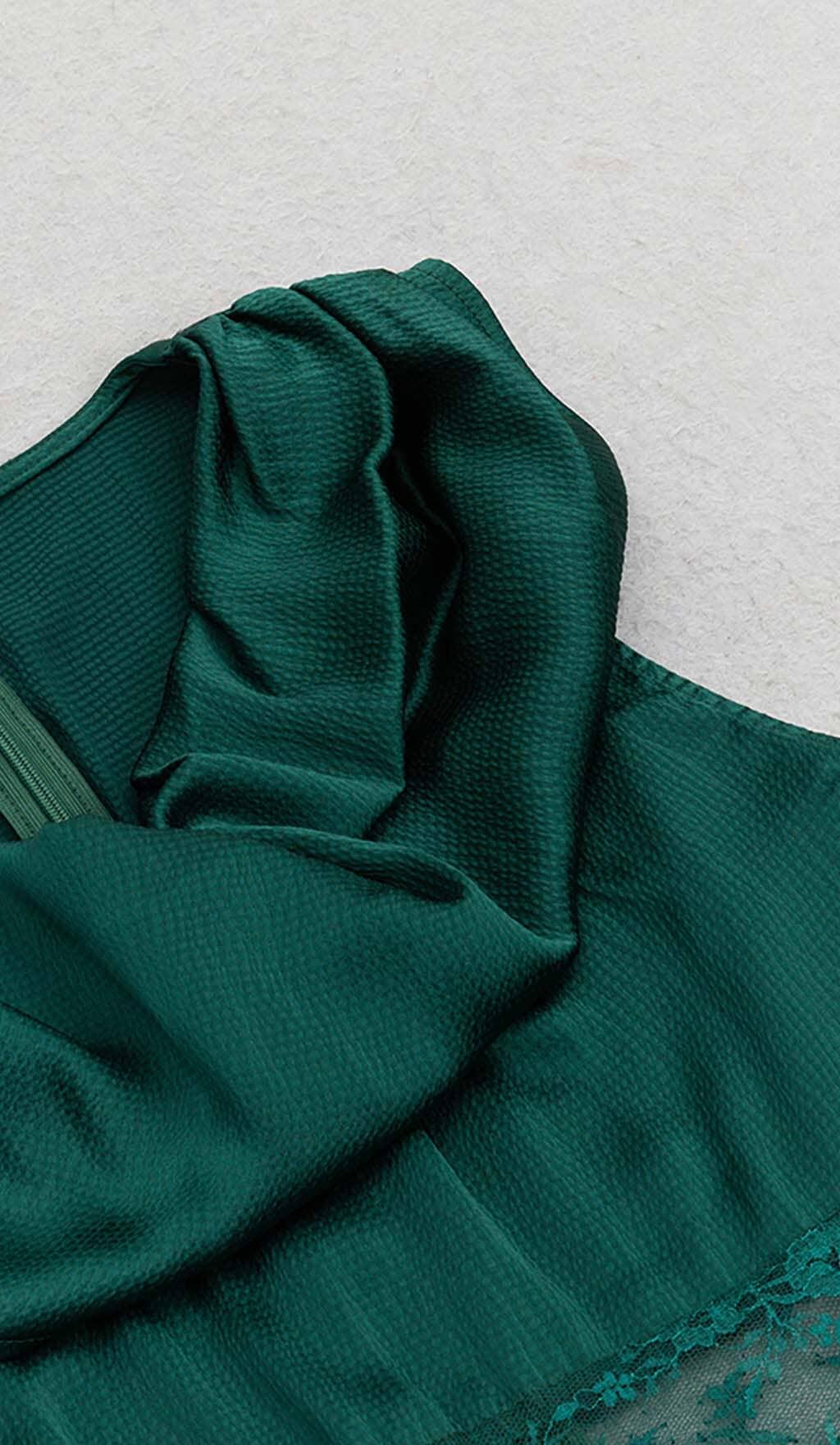 THIGH SLIT LACE MIDI DRESS IN TURQUOISE