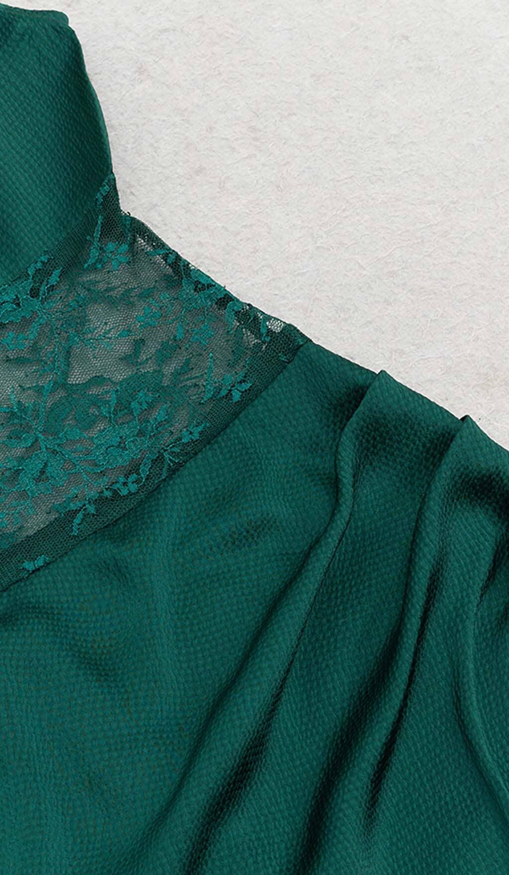Make a statement and exude elegance with our Thigh Slit Lace Midi Dress in Turquoise. Shop now and be the center of attention at your next special occasion.