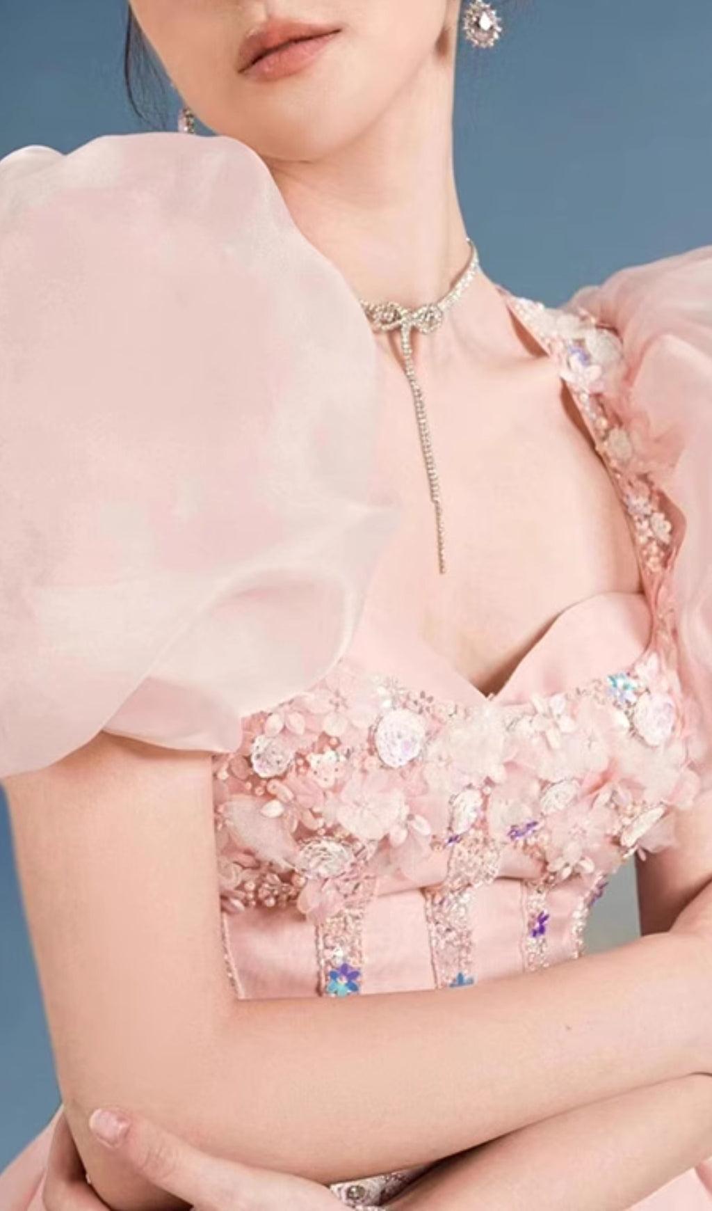THREE-DIMENSIONAL FLOWER EMBROIDERY MINI DRESS