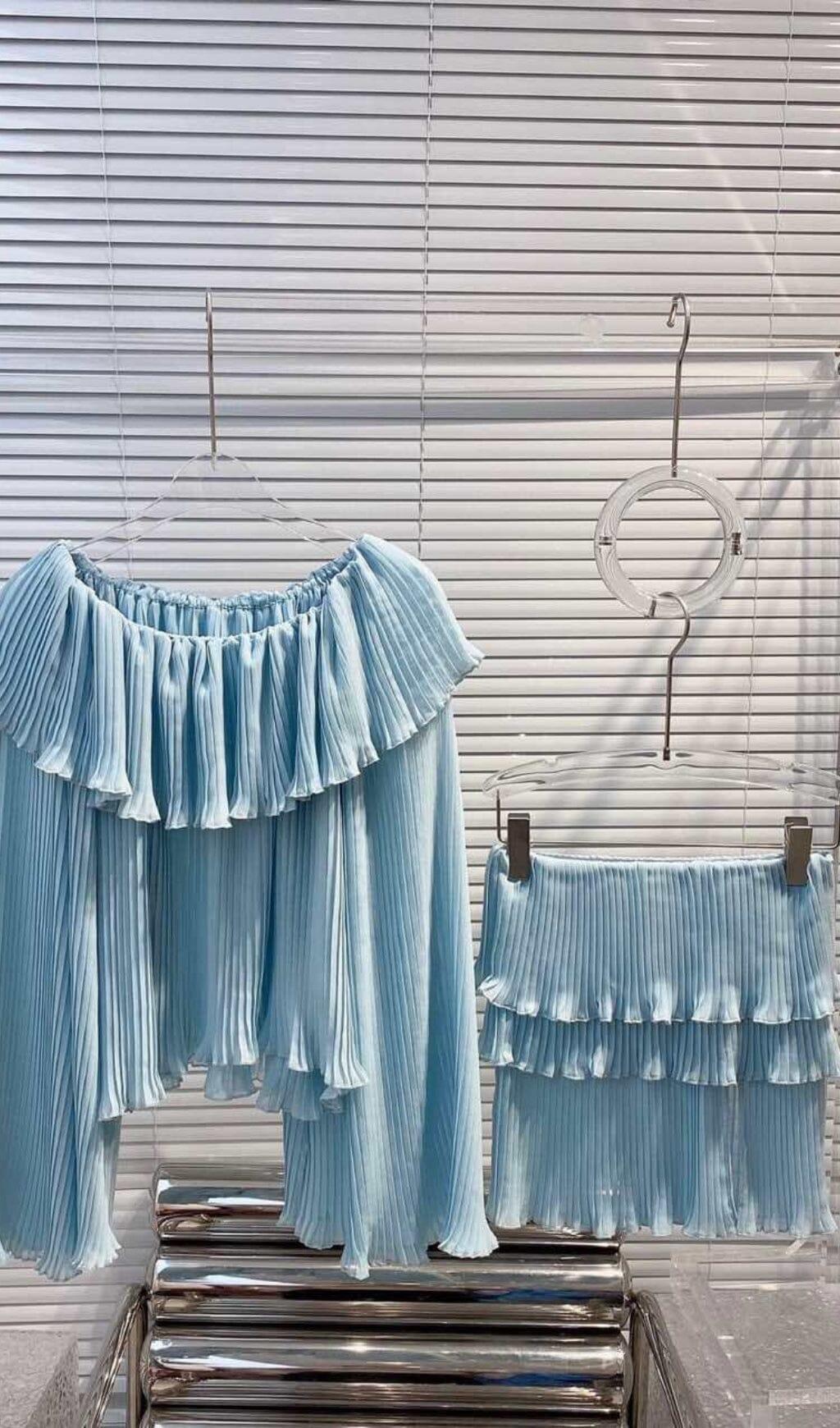 TIERED OFF-SHOULDER TWO PIECE SET IN BLUE