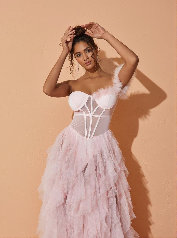 Beautify your special occasion ensemble with the Titania One Shoulder Tulle Maxi Dress In Blush. This exquisite maxi dress features a single shoulder strap and a sweeping tulle skirt for a look that is both glamorous and modern. Perfect for any event, the Titania is sure to turn heads.