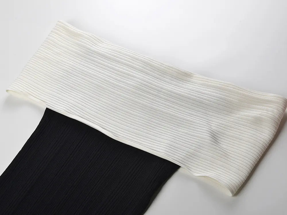The off-shoulder design and bow detailing exude boldness, while the comfortable knit material and midi length provide a touch of adventure. Perfect for those who want to stand out and make a statement!