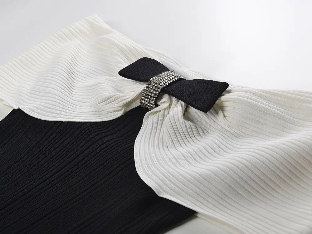 TRUDA BLACK KNIT BOW OFF-SHOULDER MIDI DRESS