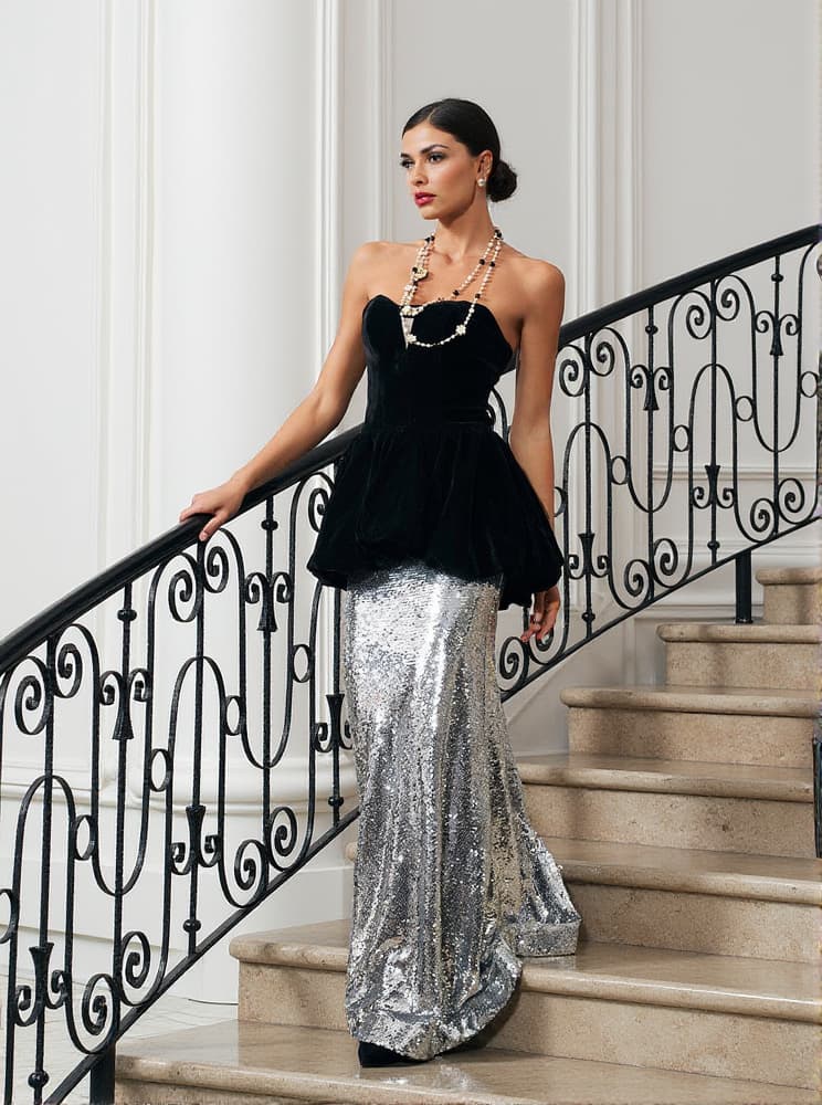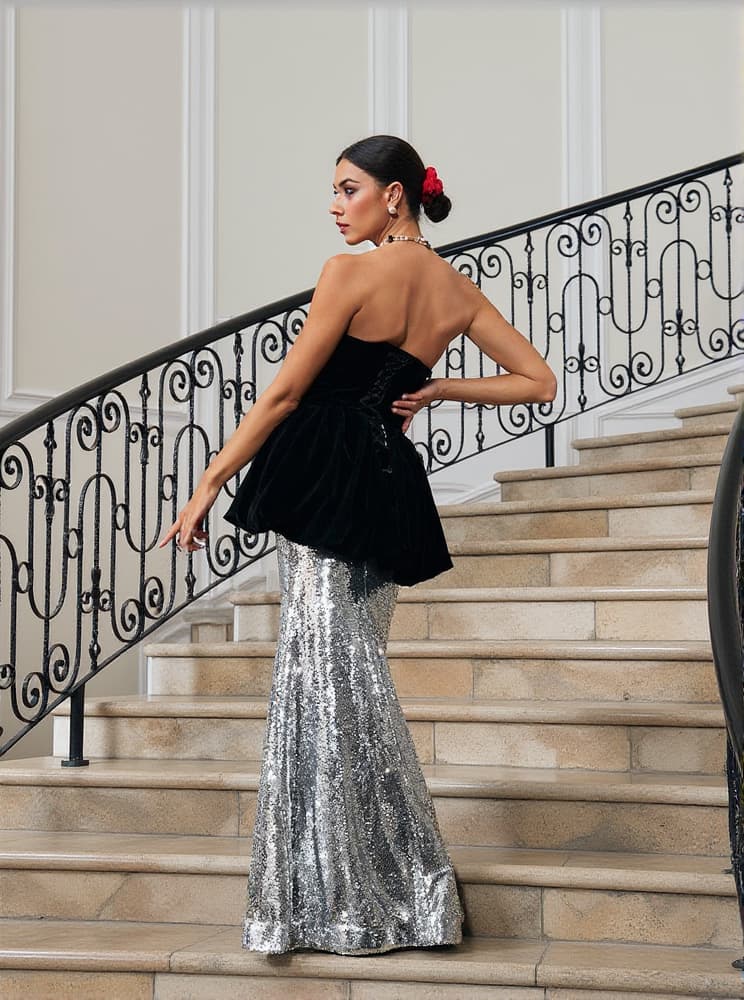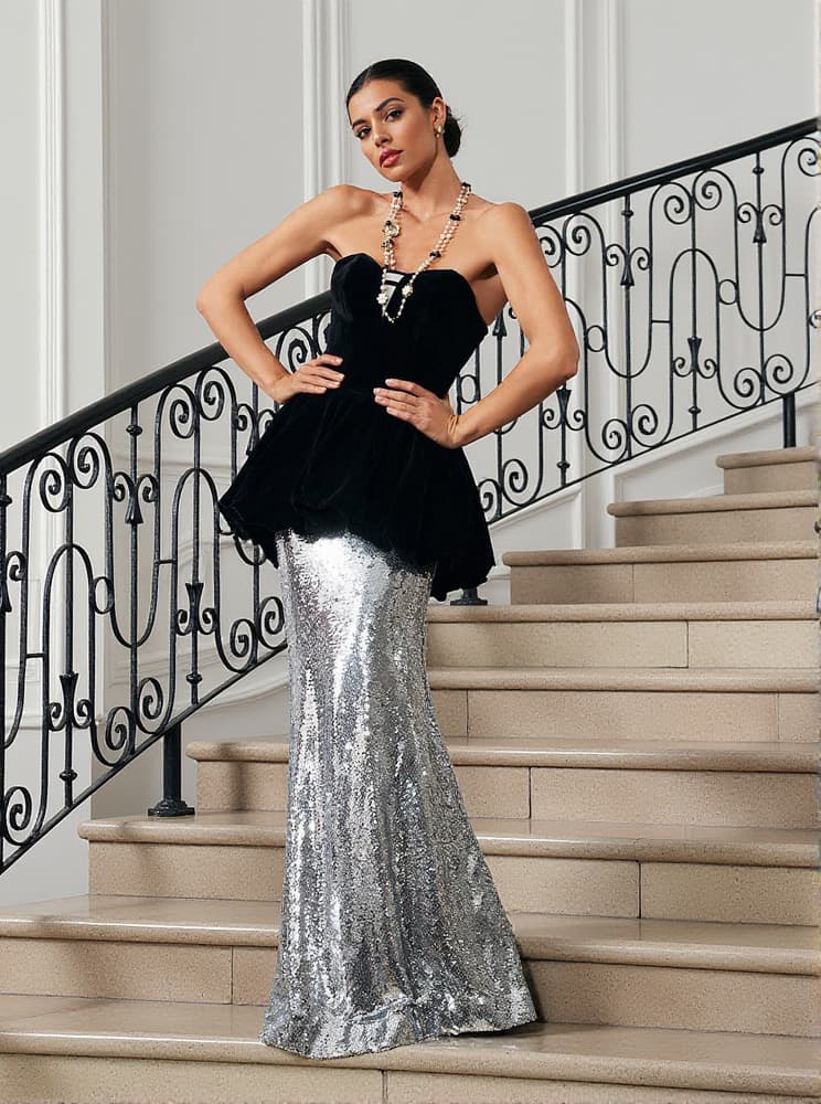 This elegant Trudy Patchwork Velvet Mermaid Dress made of luxurious velvet is a timeless classic. The classic black color and intricate patchwork design add an attractive flair to any wardrobe. The dress features an exquisite mermaid silhouette that is sure to flatter any body type.