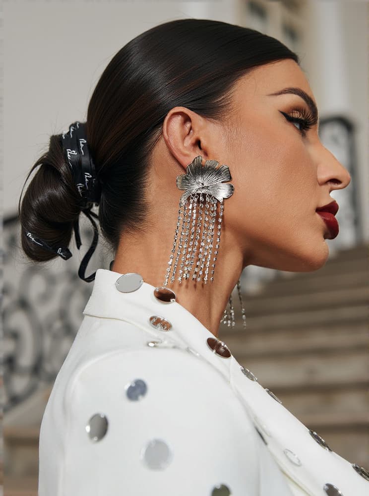 The Tsuki Flower Crystal Fringe Earrings feature an eye-catching flower crystal design and lavish fringe for an elegantly sophisticated look. Perfect for special occasions or everyday wear!
