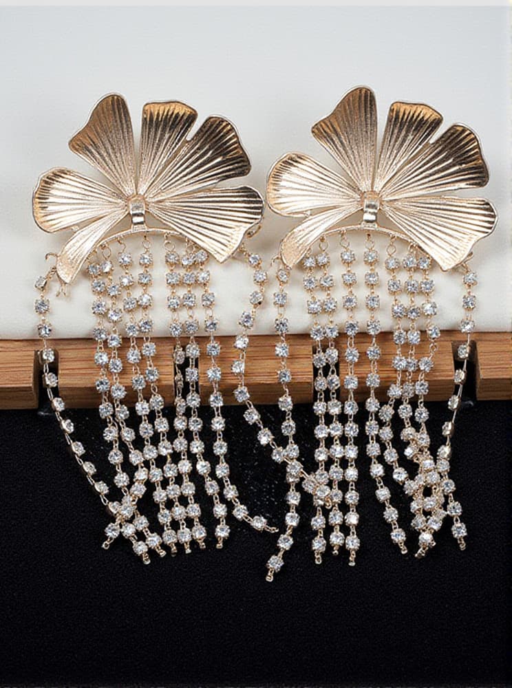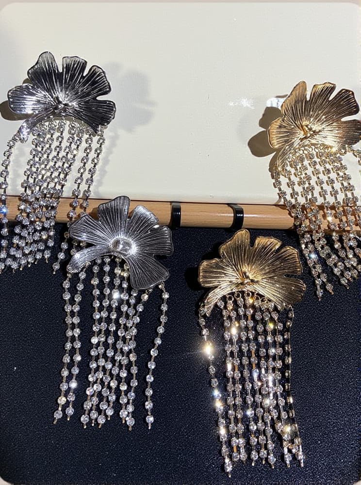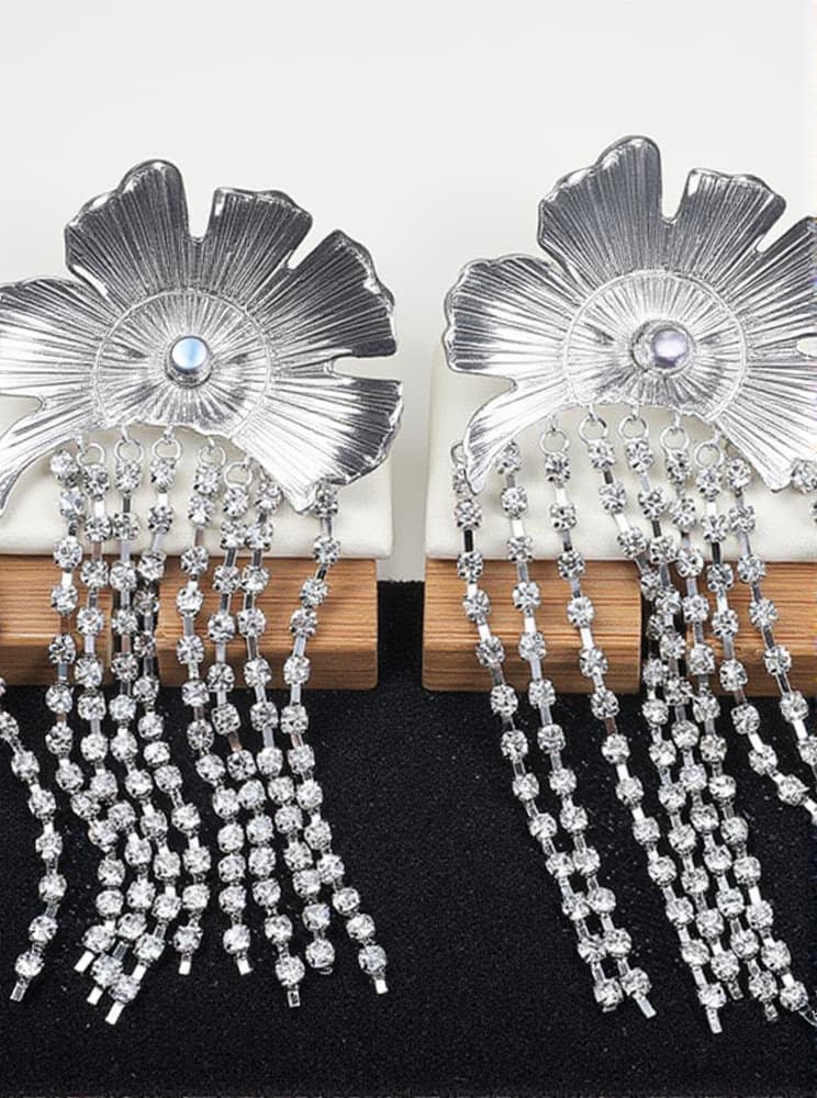 Tsuki Flower Crystal Fringe Earrings