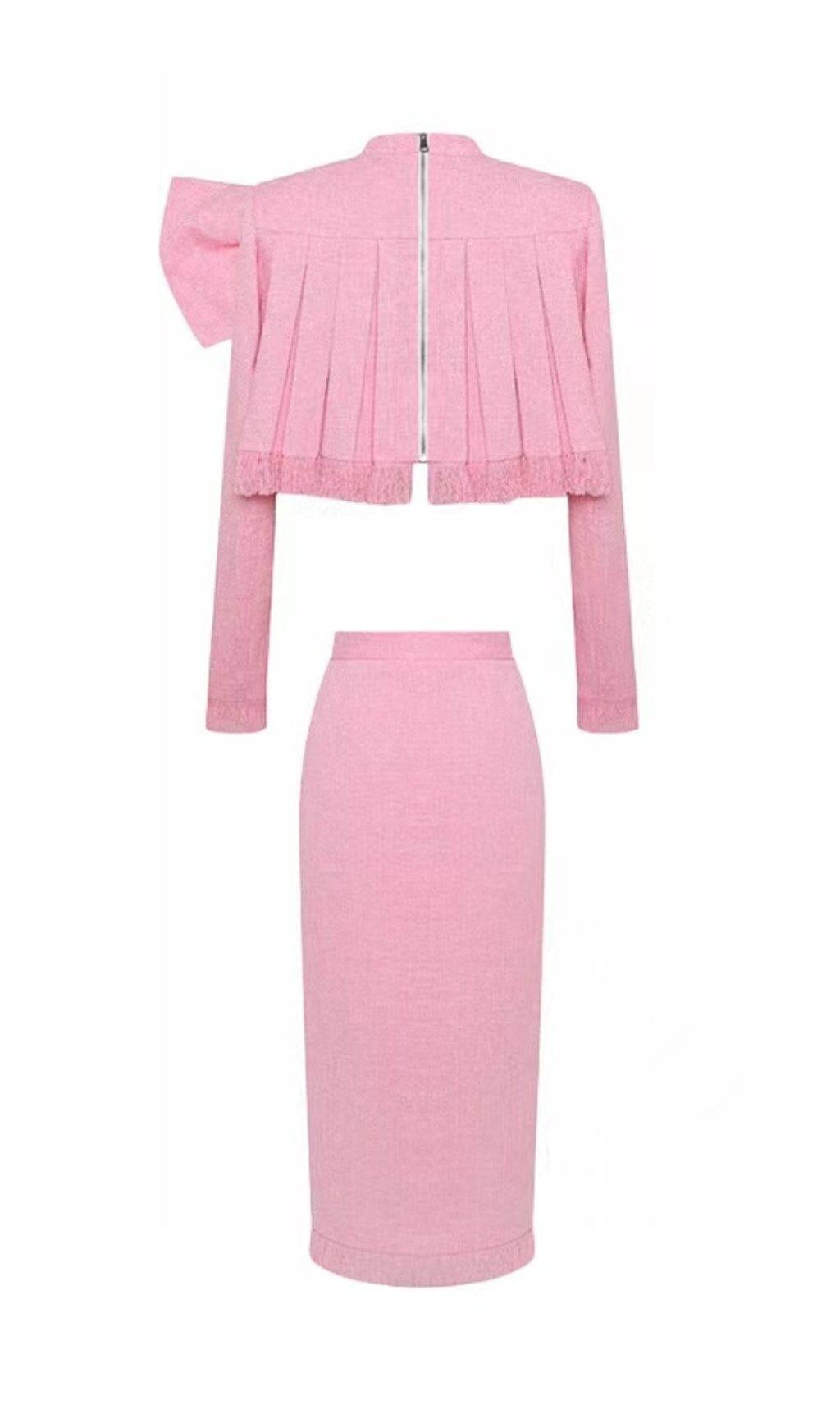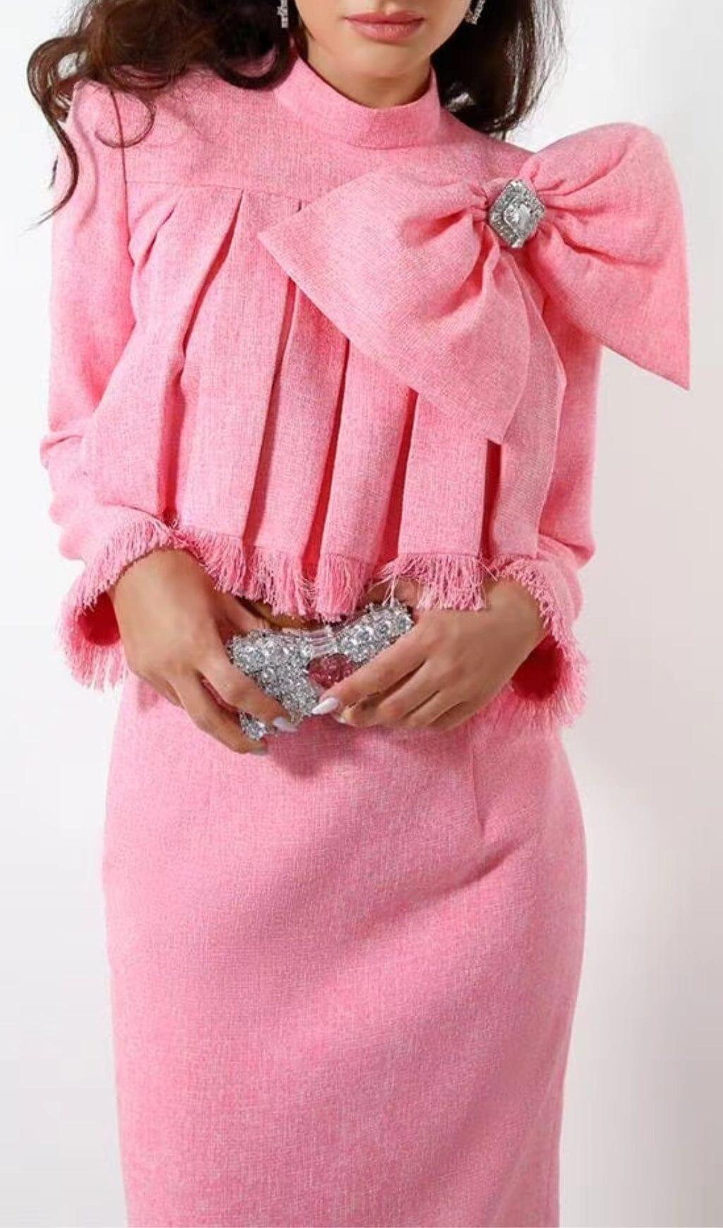 TWEED BOW EMBELLISHED SET IN PINK