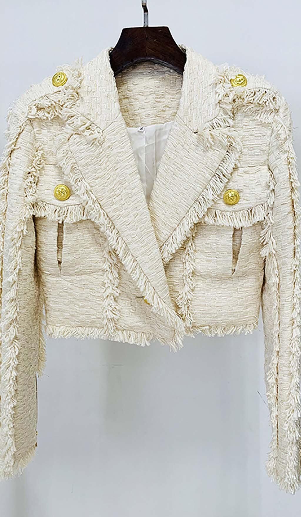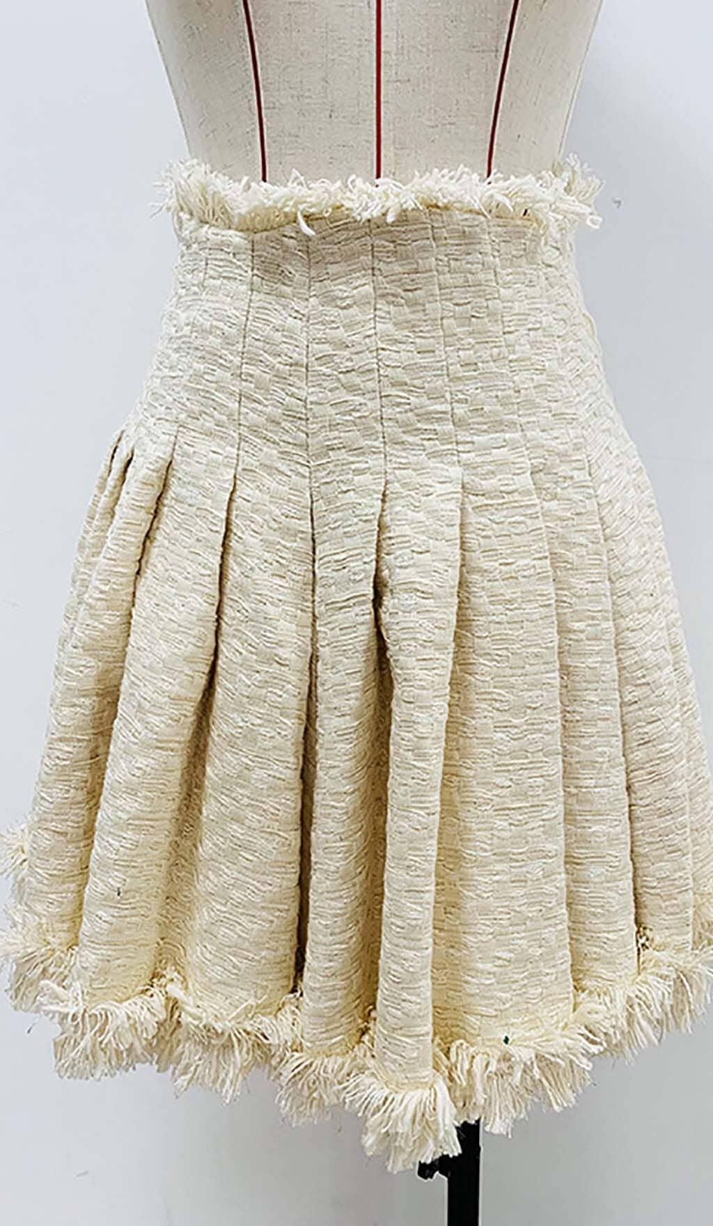 TWEED CROPPED JACKET WITH PLATED SKIRT IN LVORY