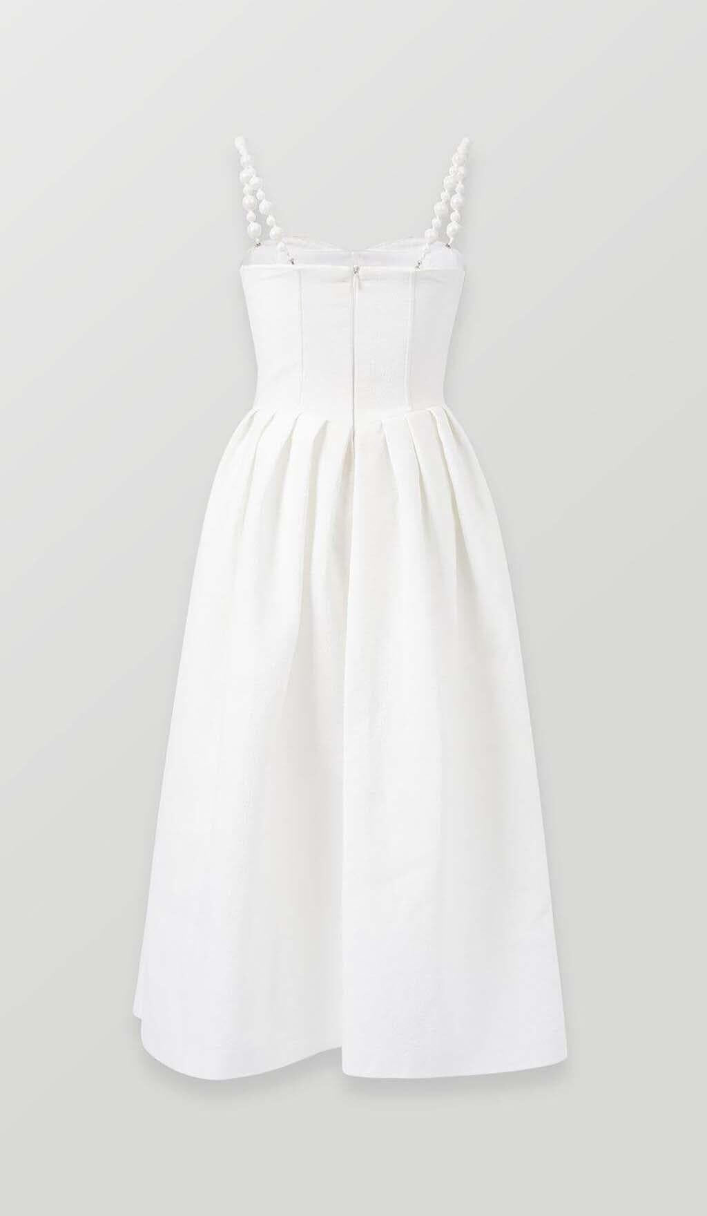 TWISTED PEARL STRAP MIDI DRESS IN WHITE
