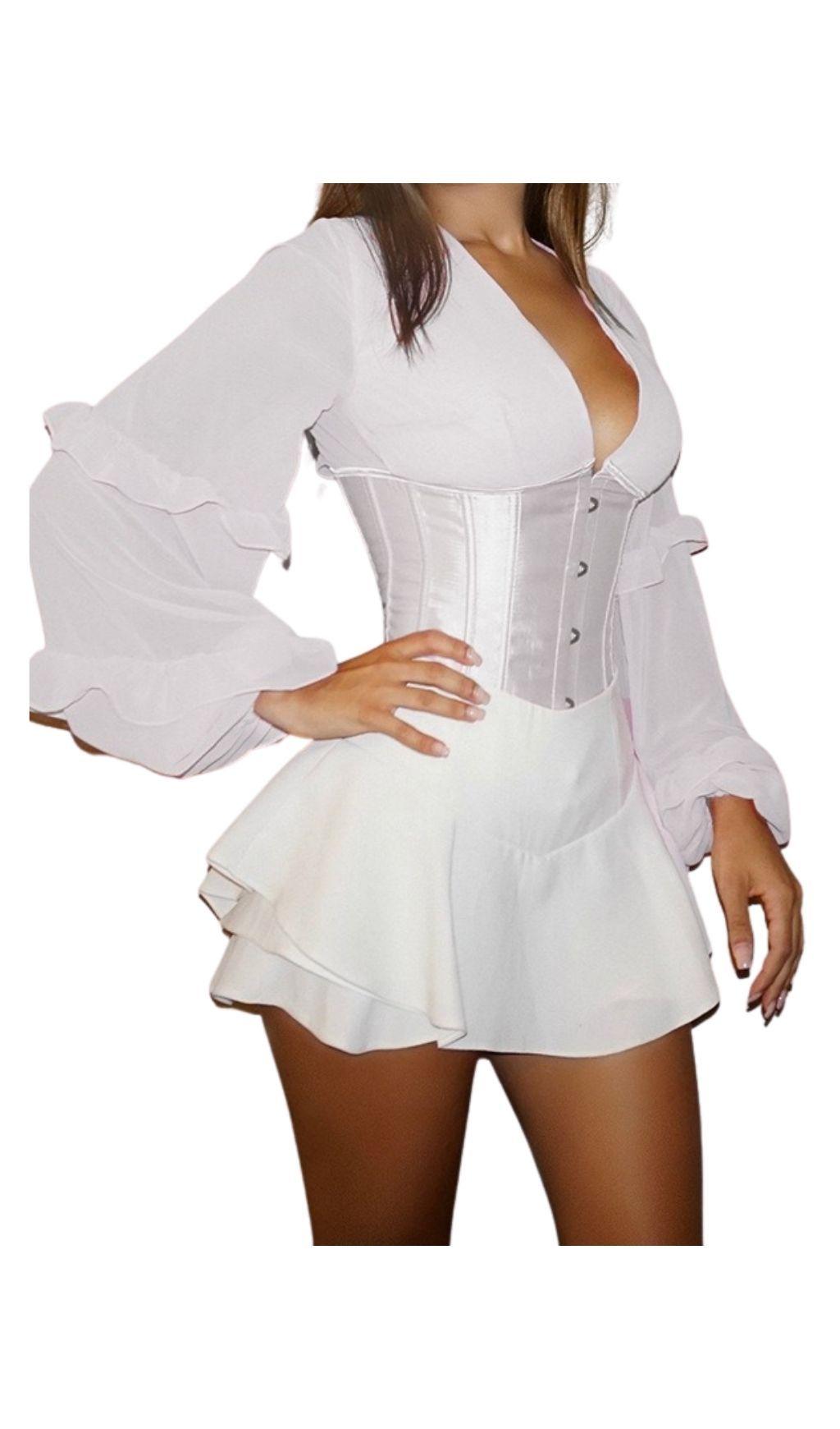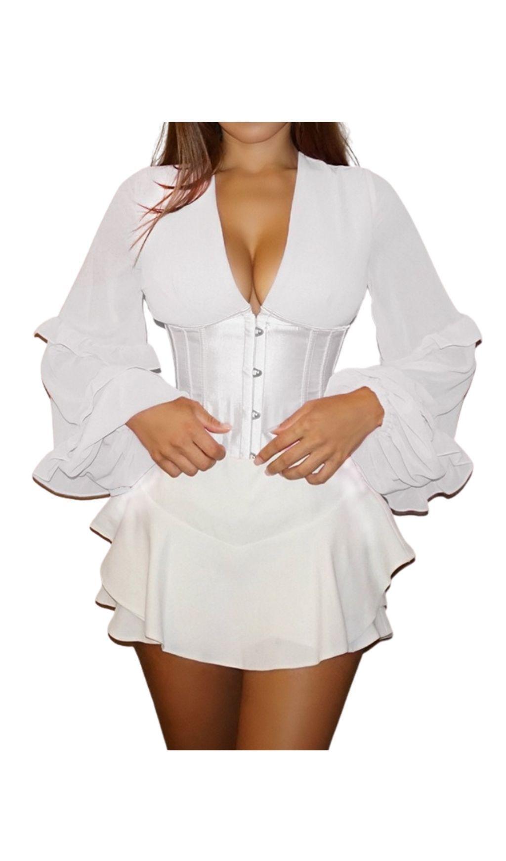 The White V-Neck Backless Corset Top is the epitome of glamour and elegance. With its stunning V-collar design and horn long sleeves, it exudes a sense of sophistication that will turn heads wherever you go. The adjustable straps on the back allow you to showcase your beautiful back, adding an extra touch of allure to your look. The waist girdle design accentuates your curves, creating a gorgeous S-curve figure.