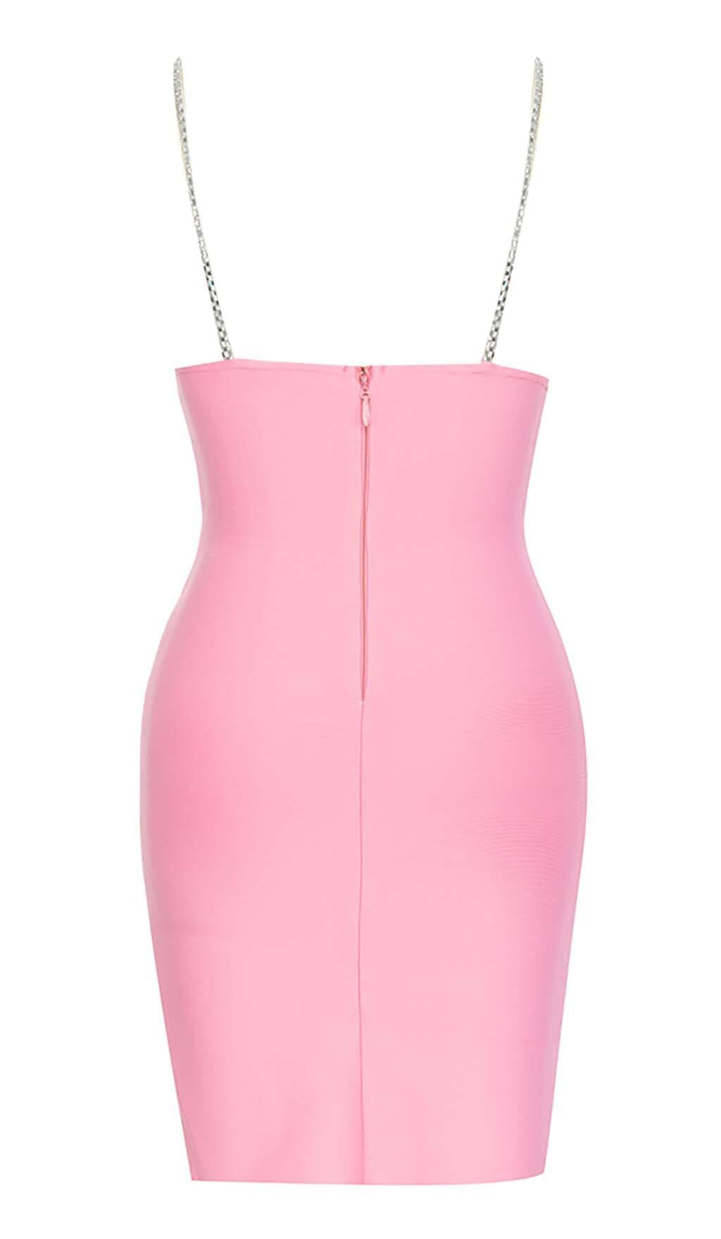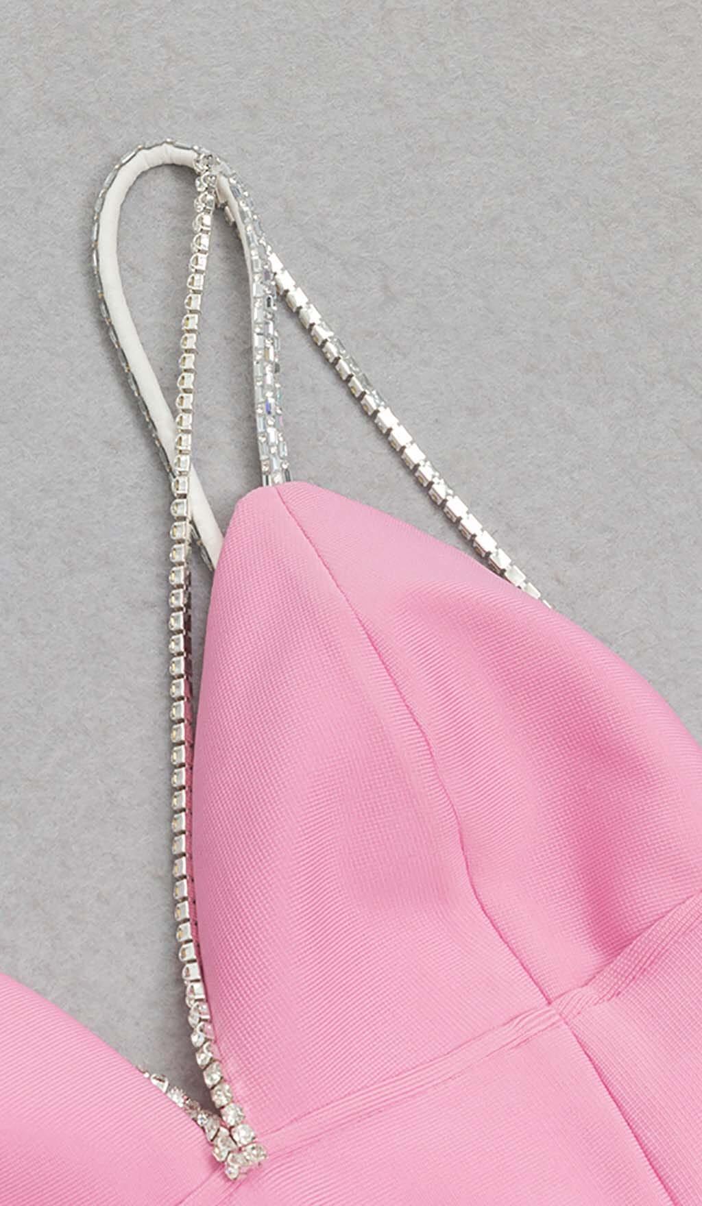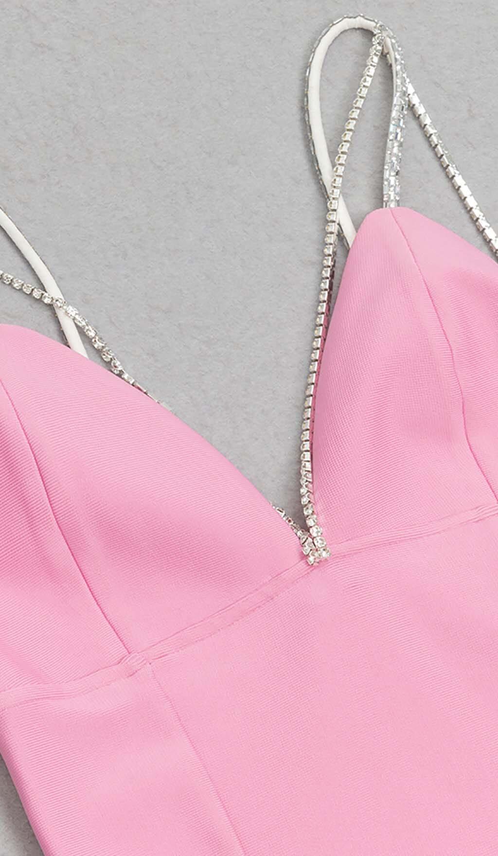 V-NECK CRYSTAL STRAP MINI DRESS IN PINK