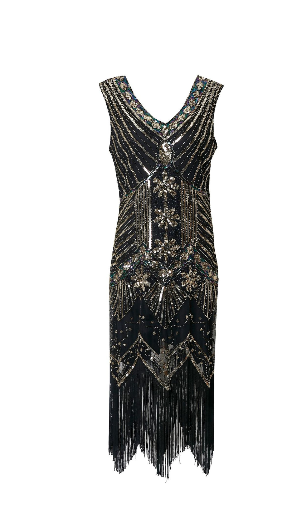 This playful and flirty dress features a V-neck design and eye-catching fringe and sequin detailing. Perfect for a night out on the town, this dress is sure to make you stand out and have some fun!