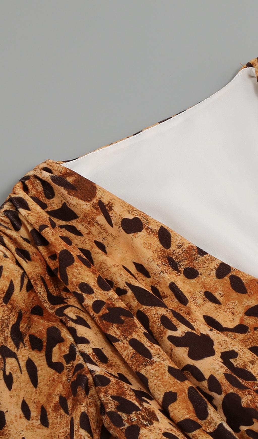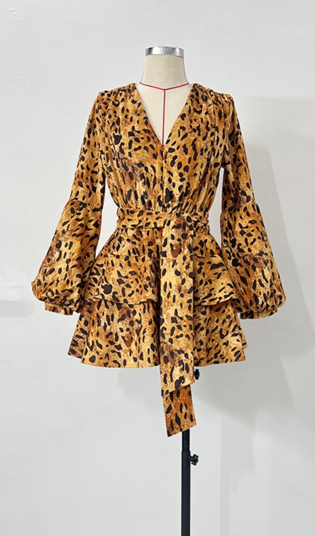 V NECK LEOPARD MINI DRESS