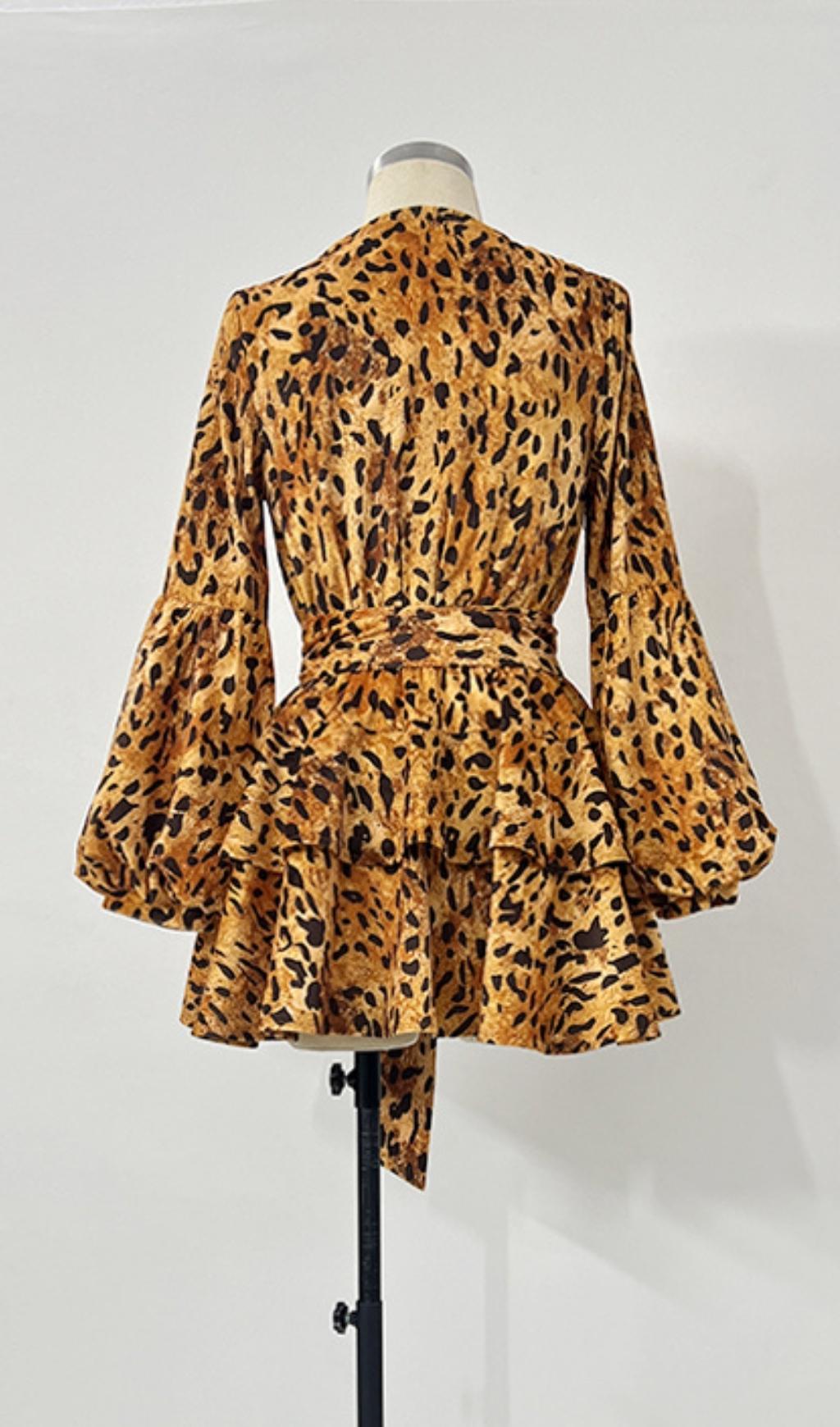 Elevate your wardrobe with our V Neck Leopard Mini Dress and unleash your wild side. Order now and be ready to turn heads wherever you go!