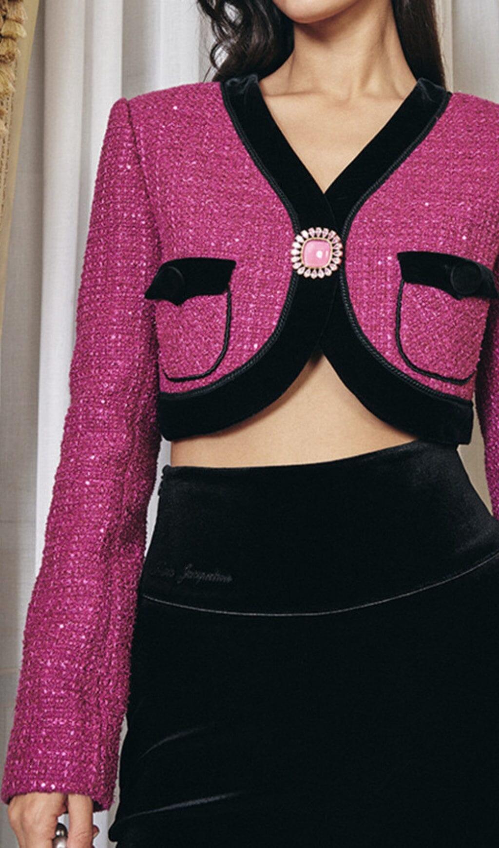 V NECK LONG SLEEVE PATCHWORK BUTTON VINTAGE SHORT COATS