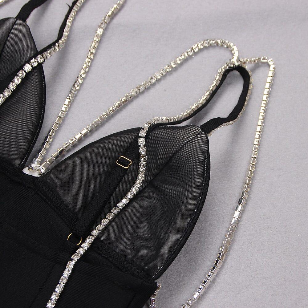 V-NECK STRAPPY MINI DRESS IN BLACK
