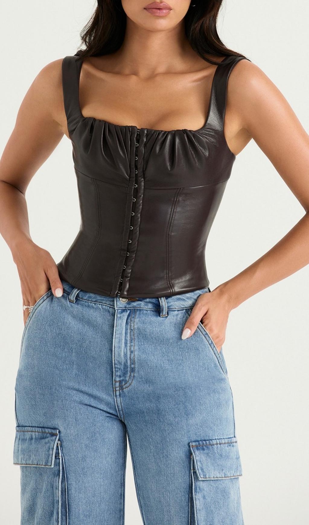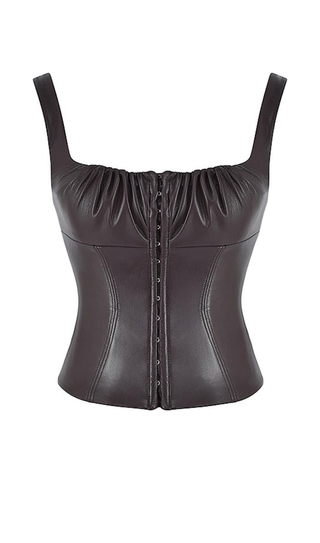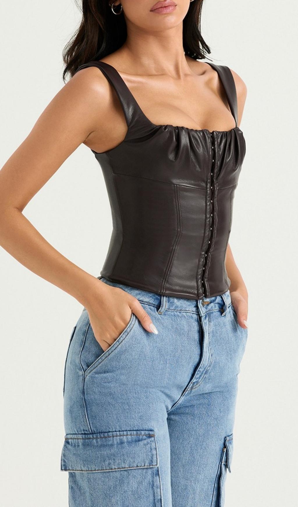 VEGAN LEATHER CORSET IN CHOCOLATE