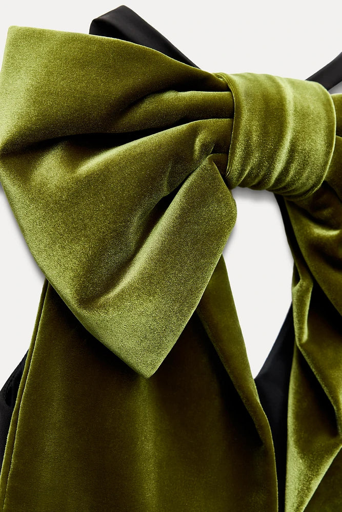 Featuring a luxurious velvet fabric and a delicate bow detail, our black maxi dress exudes elegance and sophistication. Perfect for any special occasion or a night out, this dress will make you feel glamorous and stylish. The smooth and soft texture of the fabric will keep you comfortable and the flowy silhouette will flatter any body type. Elevate your wardrobe with this stunning piece.
