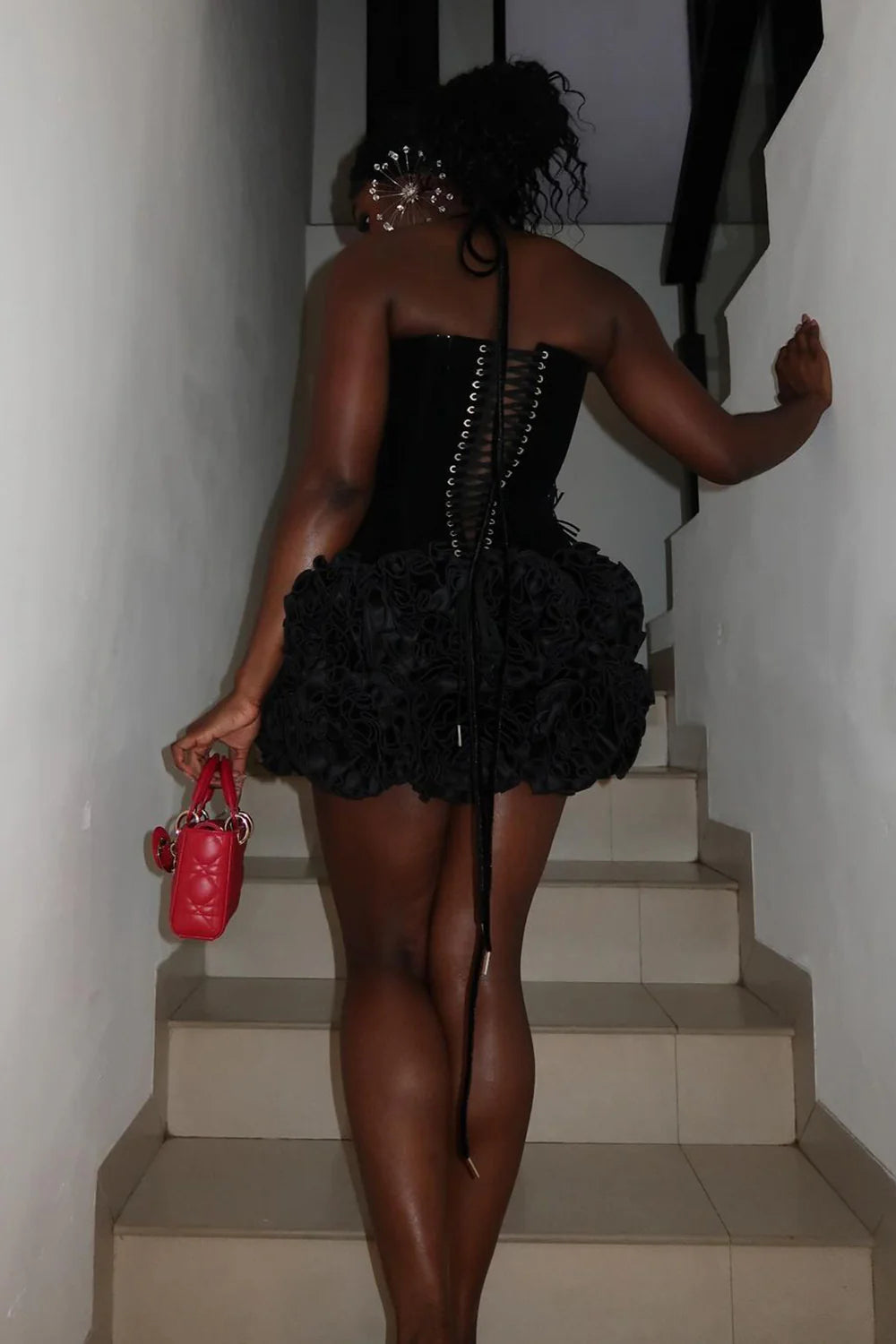 With its unique design and intricate detail, it will make a statement at any event. The diamond pattern adds a touch of elegance and the three-dimensional flowers provide a touch of sophistication. Give your style a boost with this stunning jumpsuit.