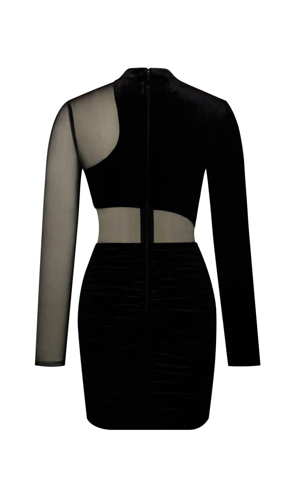 VELVET MESH LONG SLEEVE DRESS IN BLACK