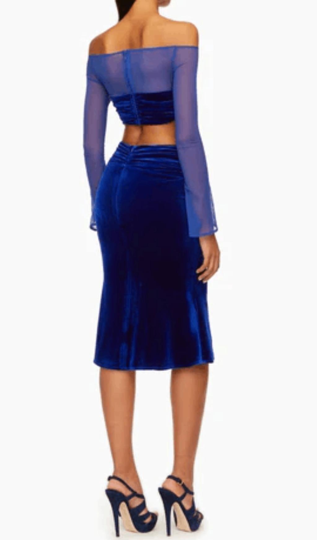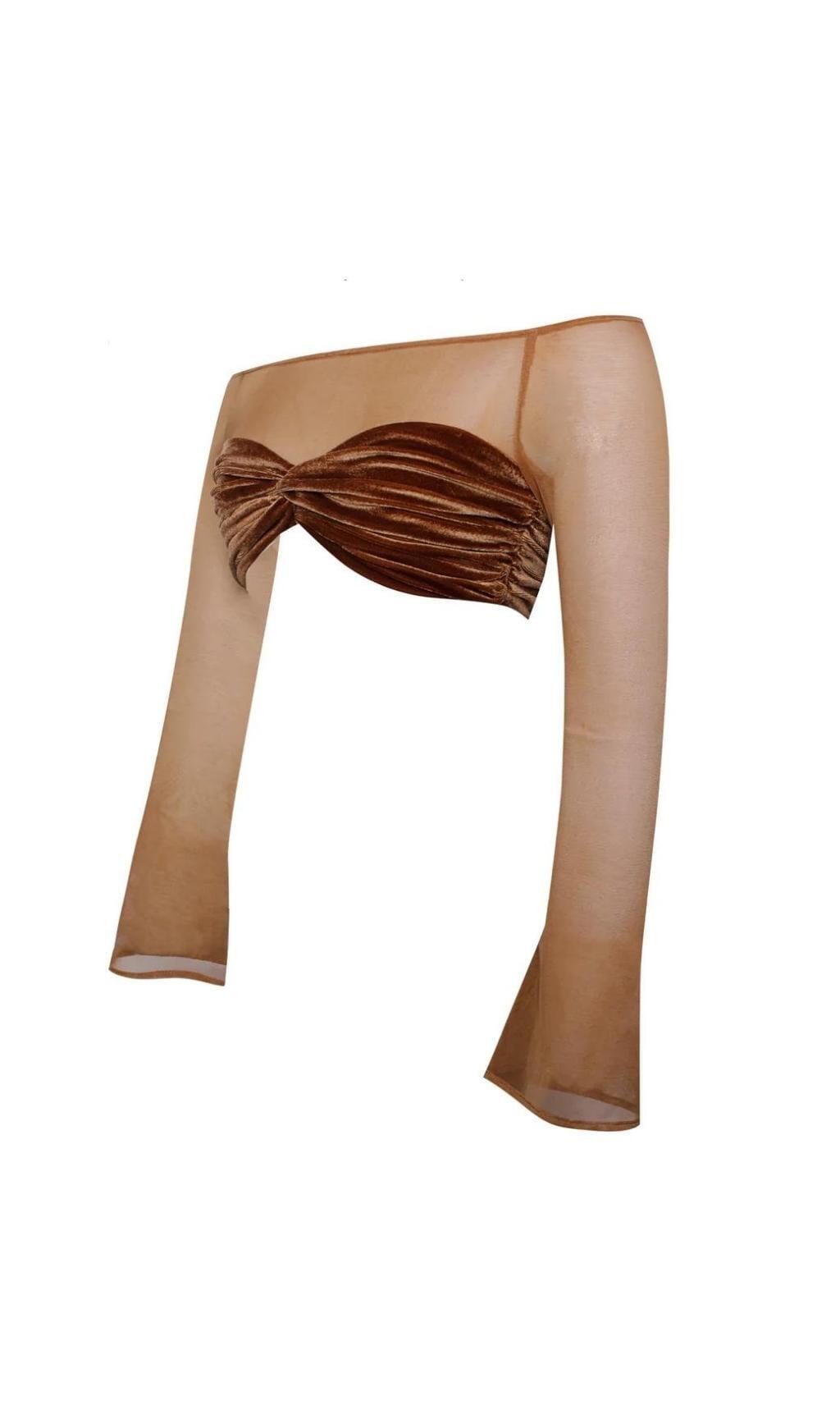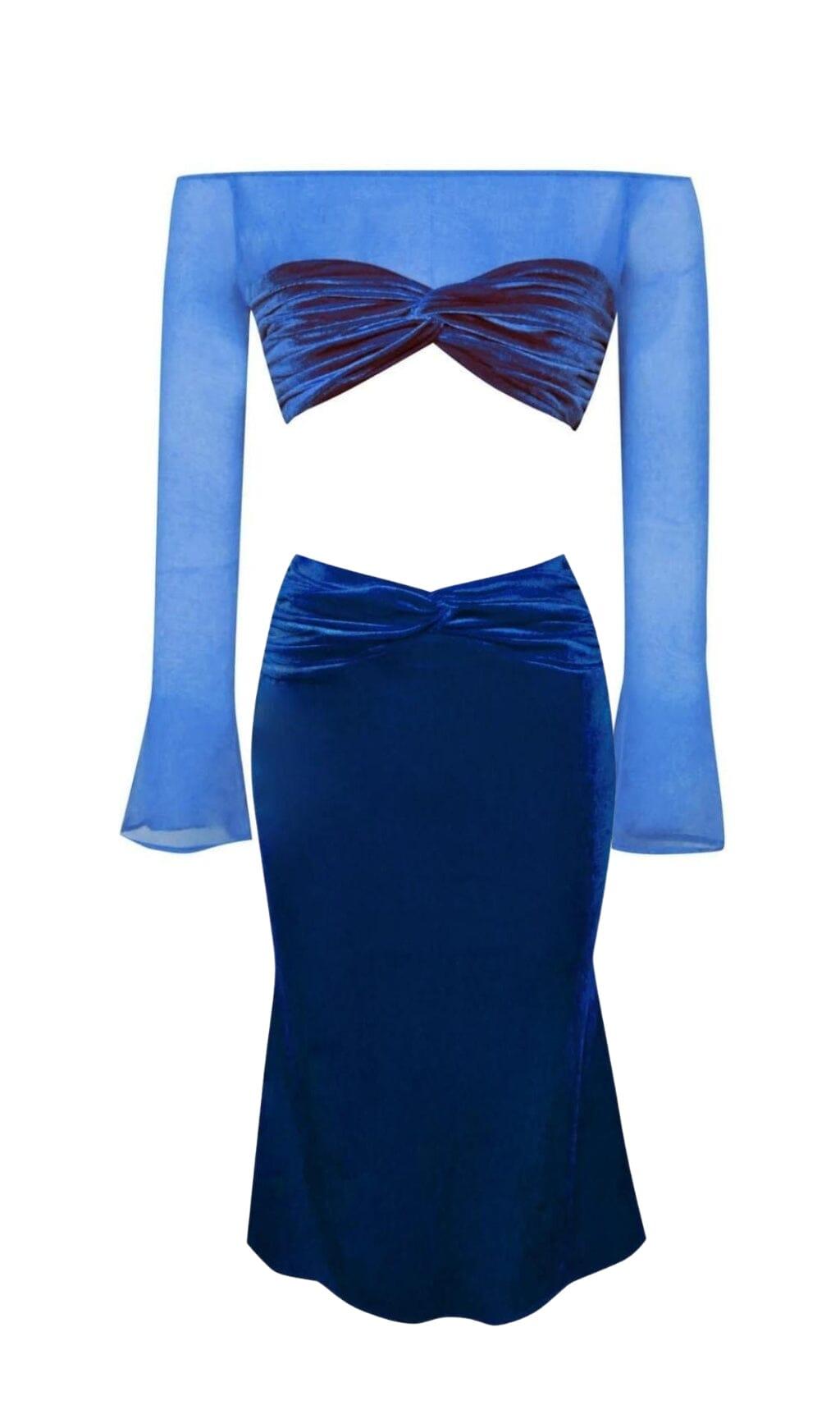 VELVET MESH SLEEVE TWO PIECE SUIT