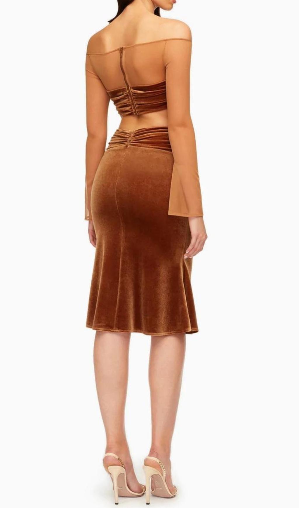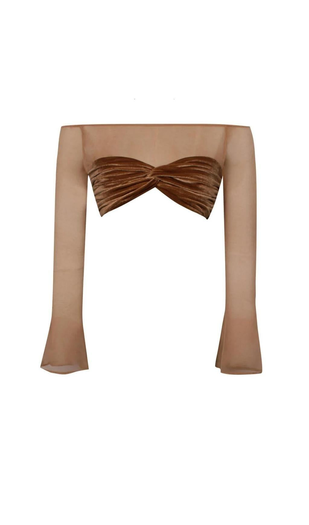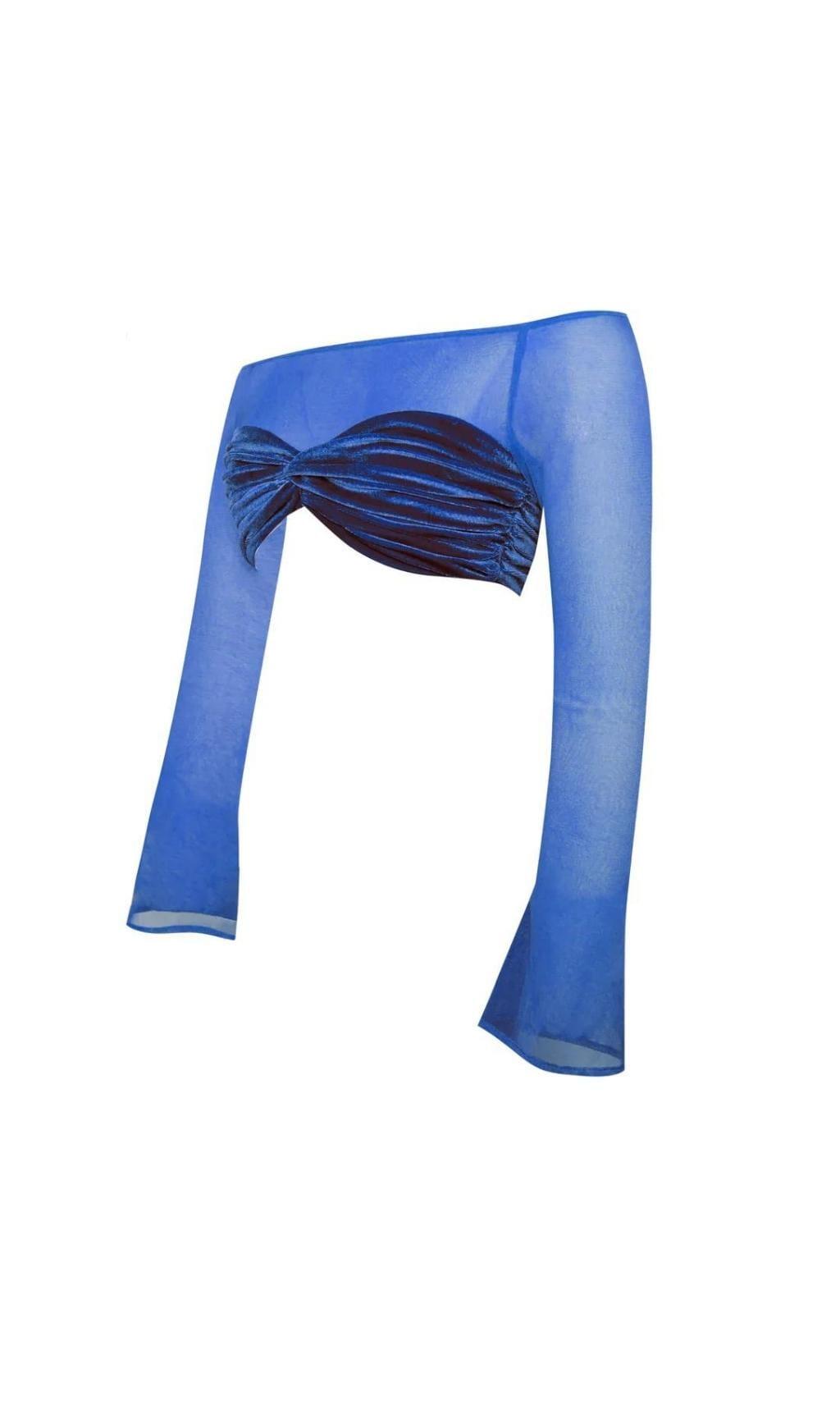 VELVET MESH SLEEVE TWO PIECE SUIT