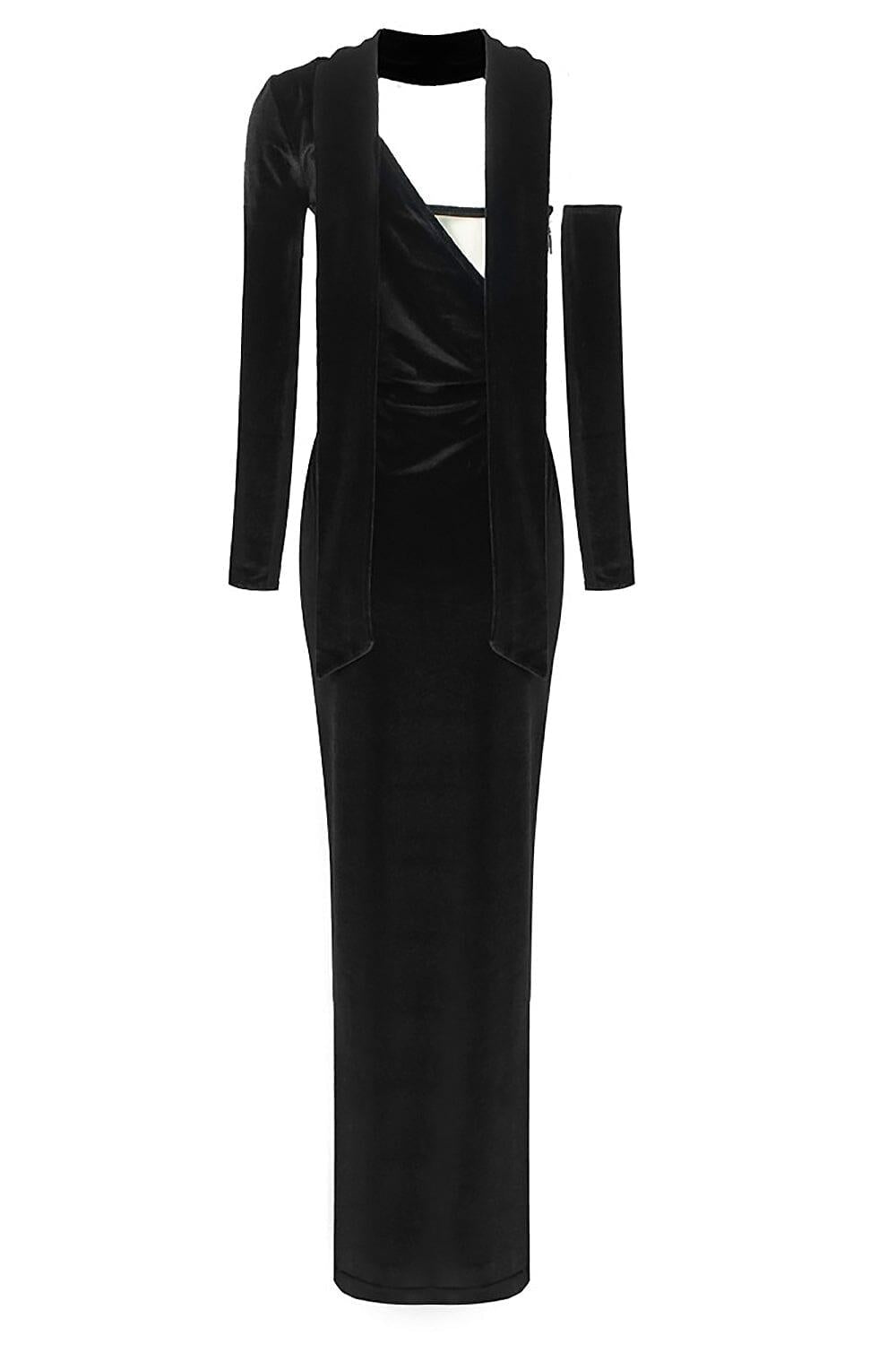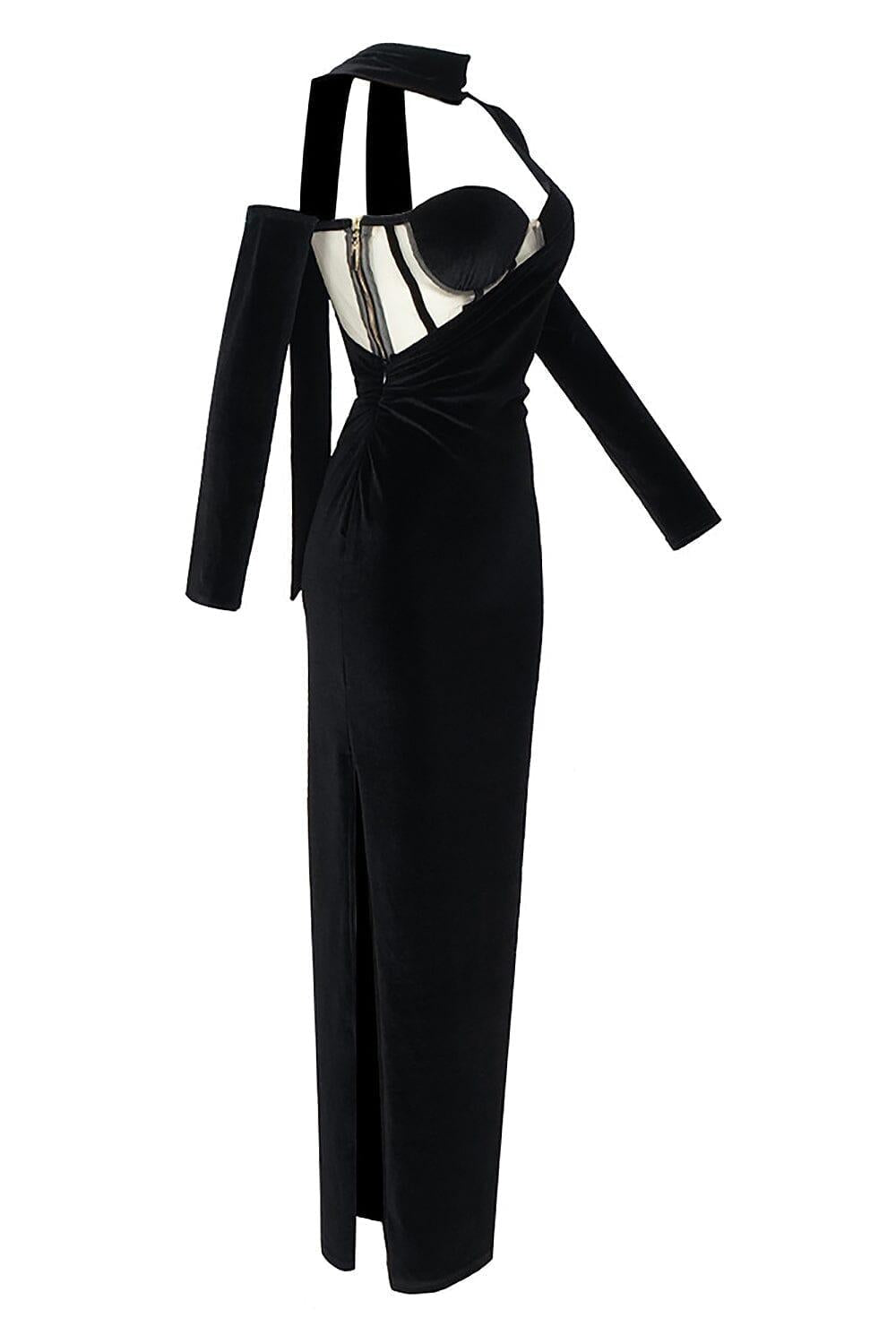 VELVET ONE SHOULDER STRAPLESS MESH MAXI DRESS