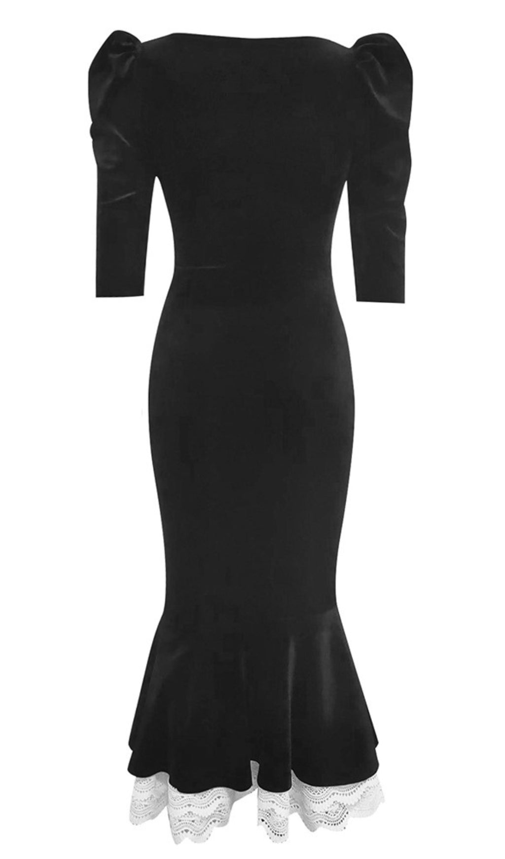 Velvet Puff - Sleeve Buttoned Mermaid Dress in Black