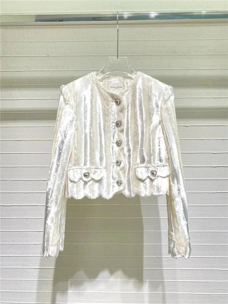 VELVET RHINESTONE BUCKLE WHITE SUITS DIAMOND MINI TWO-PIECE