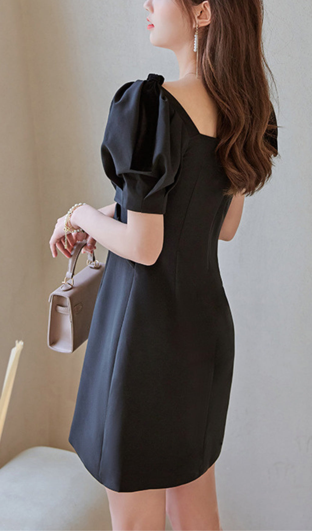 VELVET TIERED PUFF SLEEVE MINI DRESS IN BLACK